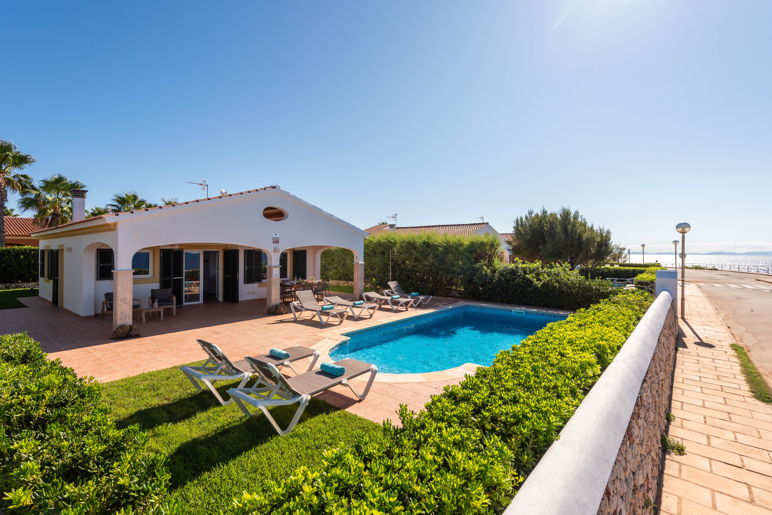What can you say about this property? Superb sea view, your own pool, quiet road despite being a front line property.We had a wonderful stay as a family with adult children.The property is very spacious, all of the bedrooms are large and there are 2 x large comfortable sofas.The master bedroom is en suite and other bedrooms share a bathroom.All bedrooms and lounge have new air-conditioning.Shop and 2 restaurants are a 10 minute walk away and the main marina with loads of restaurants is a 25 minute walk, but all walking is very flat and easy. Super easy parking on the street outside too, never had any issue getting the spot, wouldn't have had and issue trying to park 3 cars to be honest.