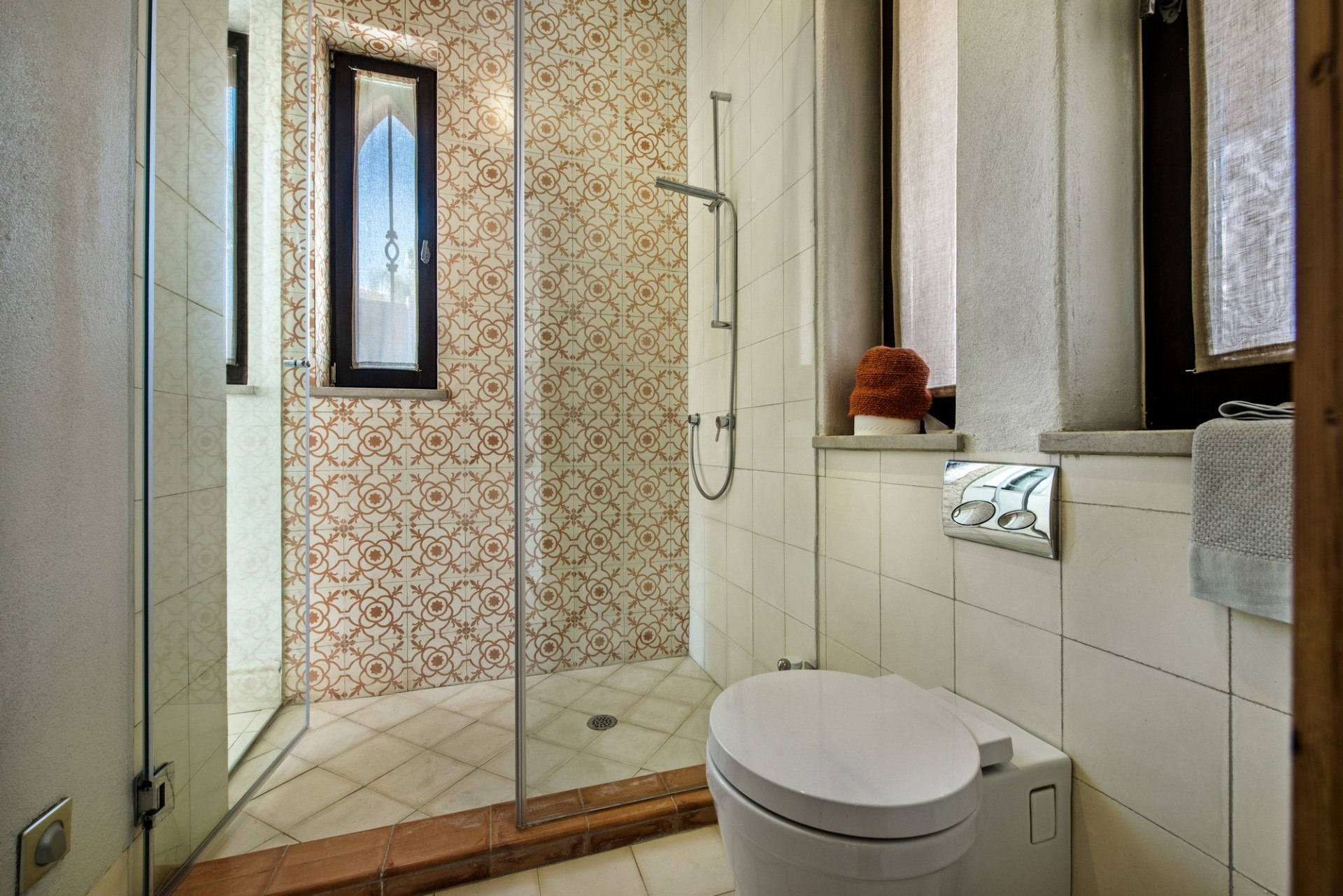 Une confortable chambre double avec salle de bain attenante s'ouvre sur la cour fermée. Si vous le souhaitez, les lits peuvent être réunis pour devenir un lit king size.