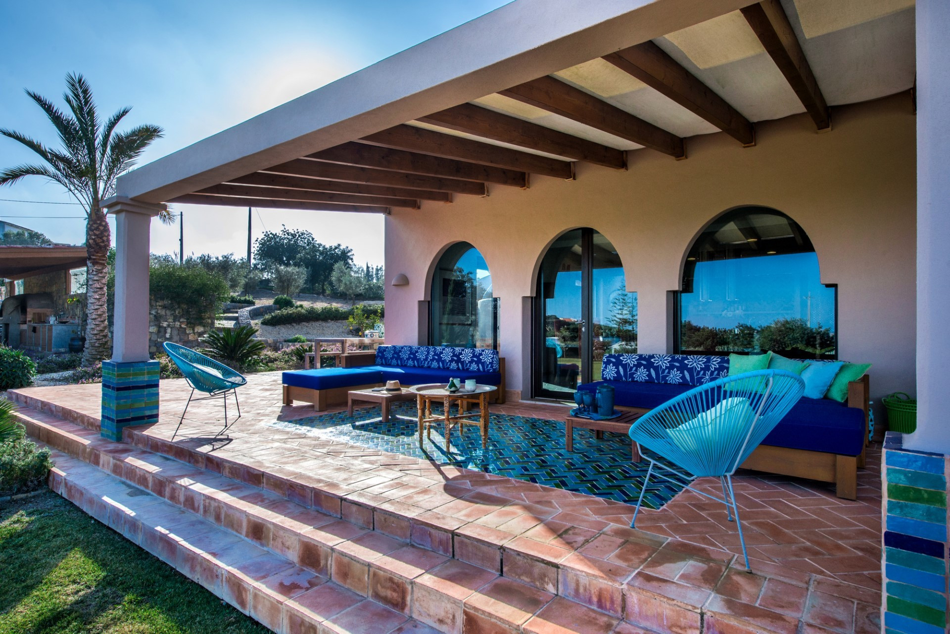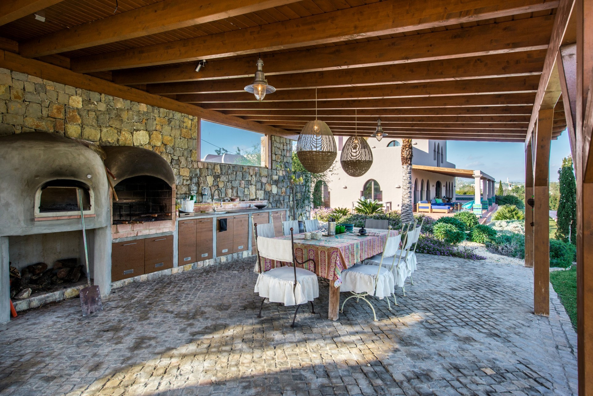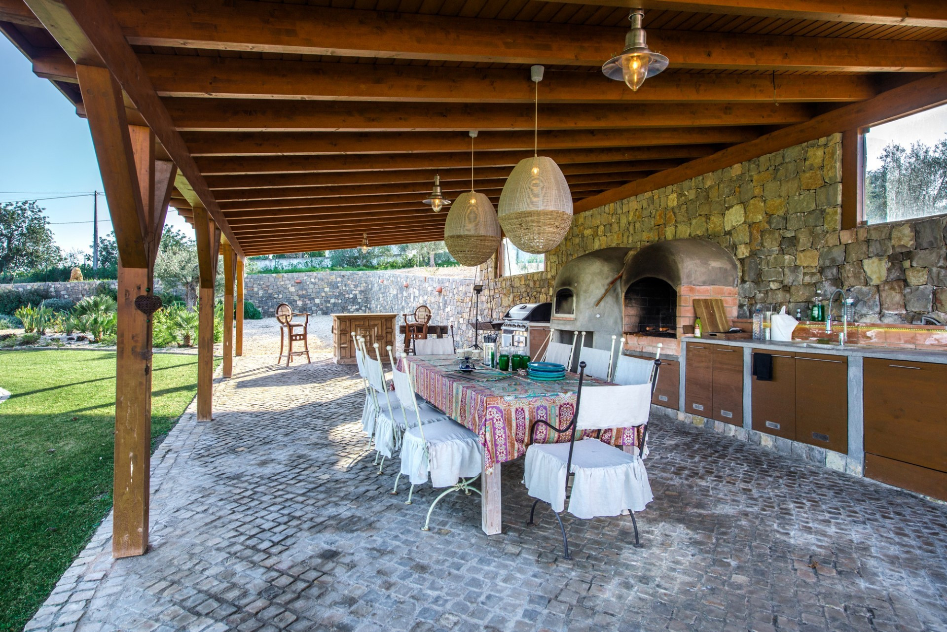 Il y a des terrasses couvertes et non couvertes, un patio fermé et une cuisine d'été bien équipée au milieu de jardins d'oliviers.