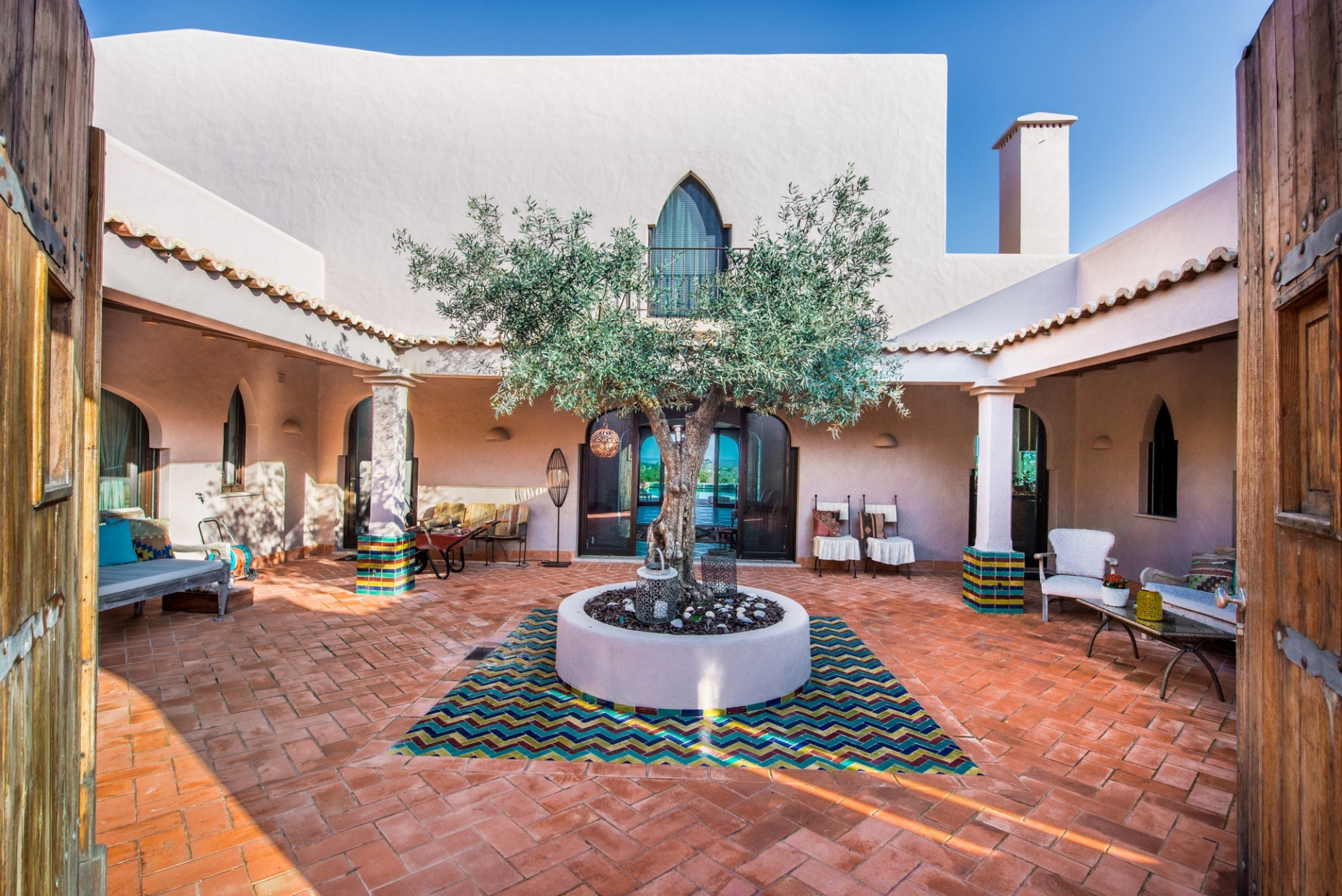 La cour fermée de style mauresque est l'entrée de la maison et dispose d'un espace extérieur avec un olivier au centre.