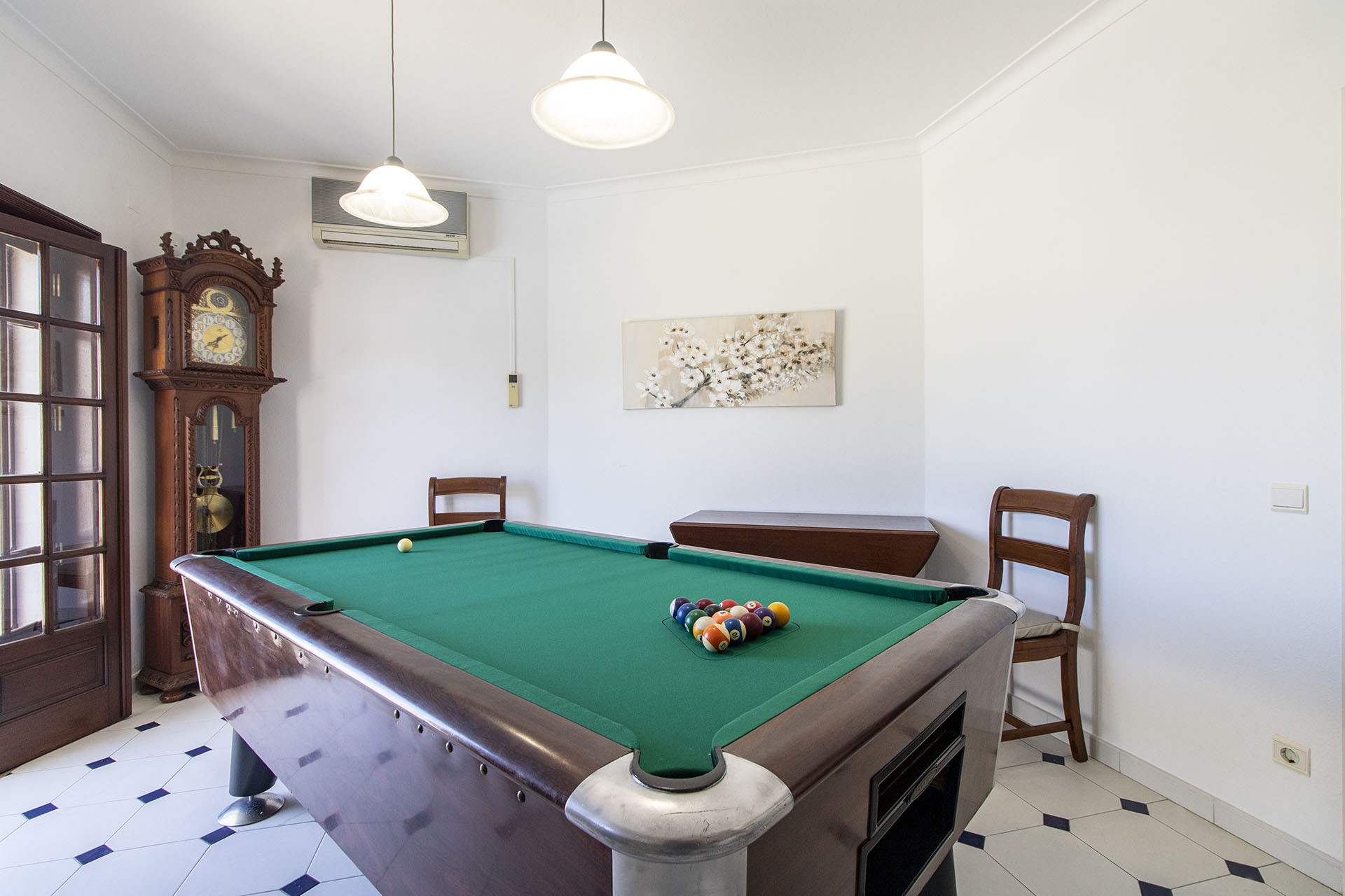 En plus du salon, il dispose d'un salon avec une table à manger. Il y a aussi une autre pièce avec une table de billard.