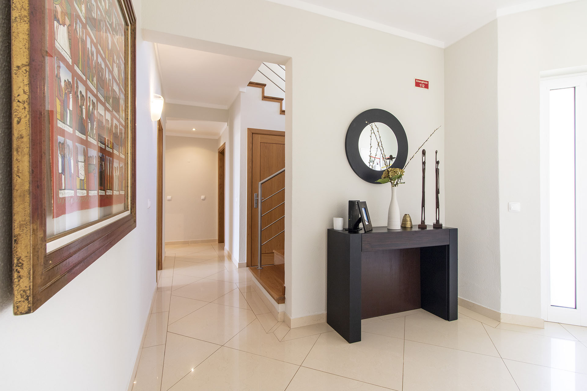 La salle à manger dispose d'une table et de chaises très spacieuses pour 8 personnes et le salon dispose d'une cheminée avec poêle, de canapés et fauteuils pouvant accueillir 8 personnes, d'une télévision à écran plat (avec accès aux chaînes portugaises et étrangères, avec fibre optique et plus de 200 chaînes), DVD, système audio et Wi-Fi. Il dispose d'une grande porte coulissante qui offre une bonne ventilation et lumière et offre un accès direct au barbecue à gaz, au jardin, à la piscine et à la magnifique vue sur les îles de l'Algarve.