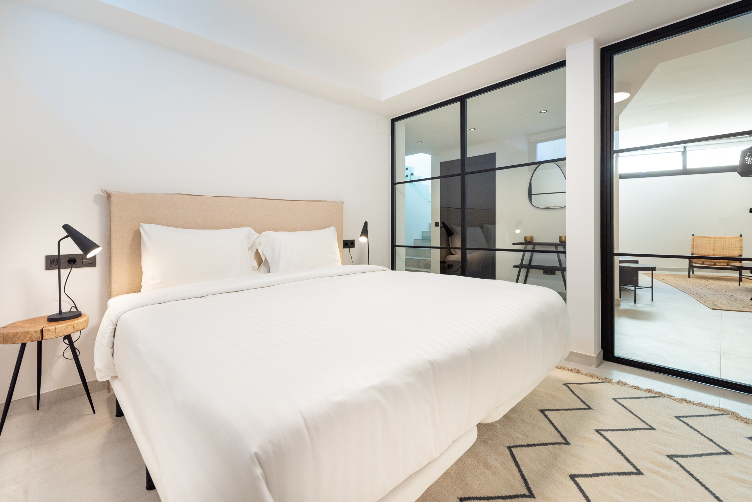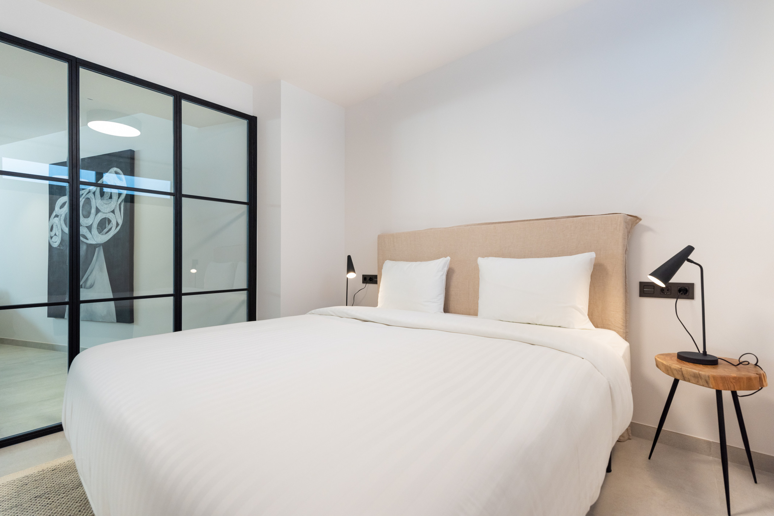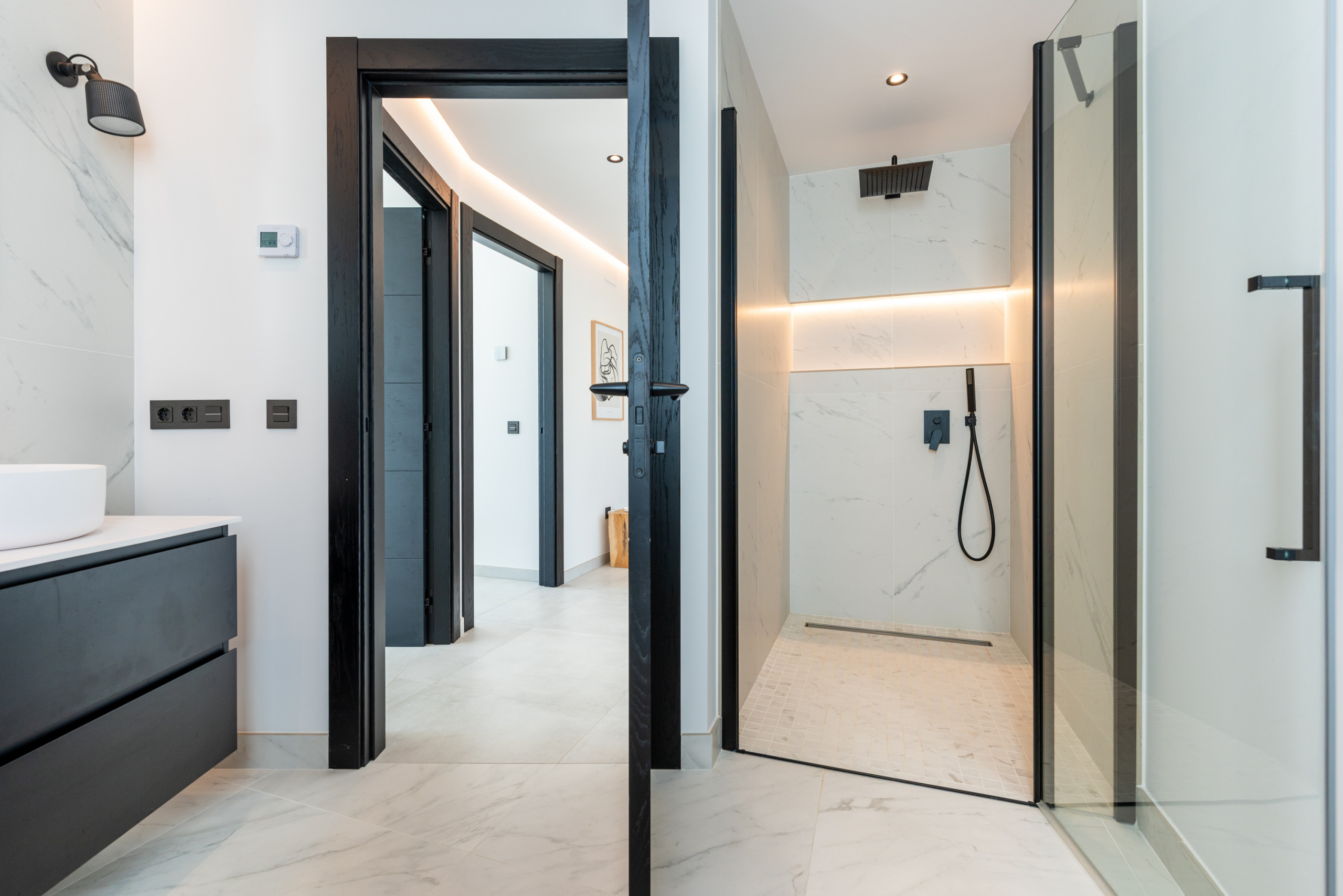 Master bedroom: A king-size bed, walk-in wardrobe, air conditioning, en-suite bathroom with shower. Exclusive access to the top terrace.