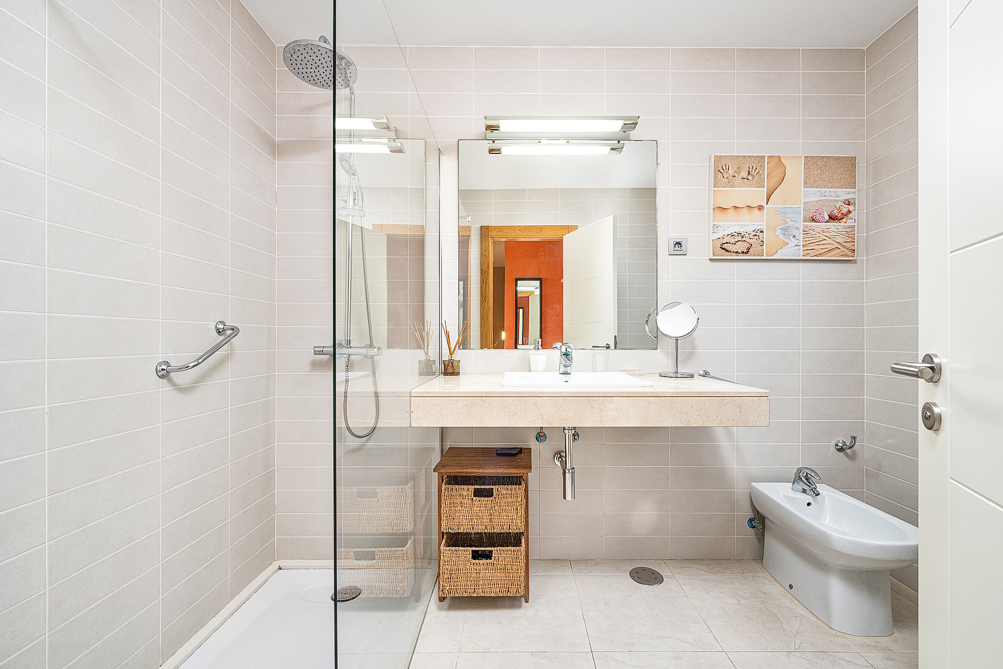 La maison très lumineuse se compose d'un salon confortable avec une cuisine moderne et intégrée, de deux chambres doubles spacieuses, avec de grands lits simples, de deux salles de bains complètes, l'une très grande avec baignoire et douche et l'autre complète avec douche.