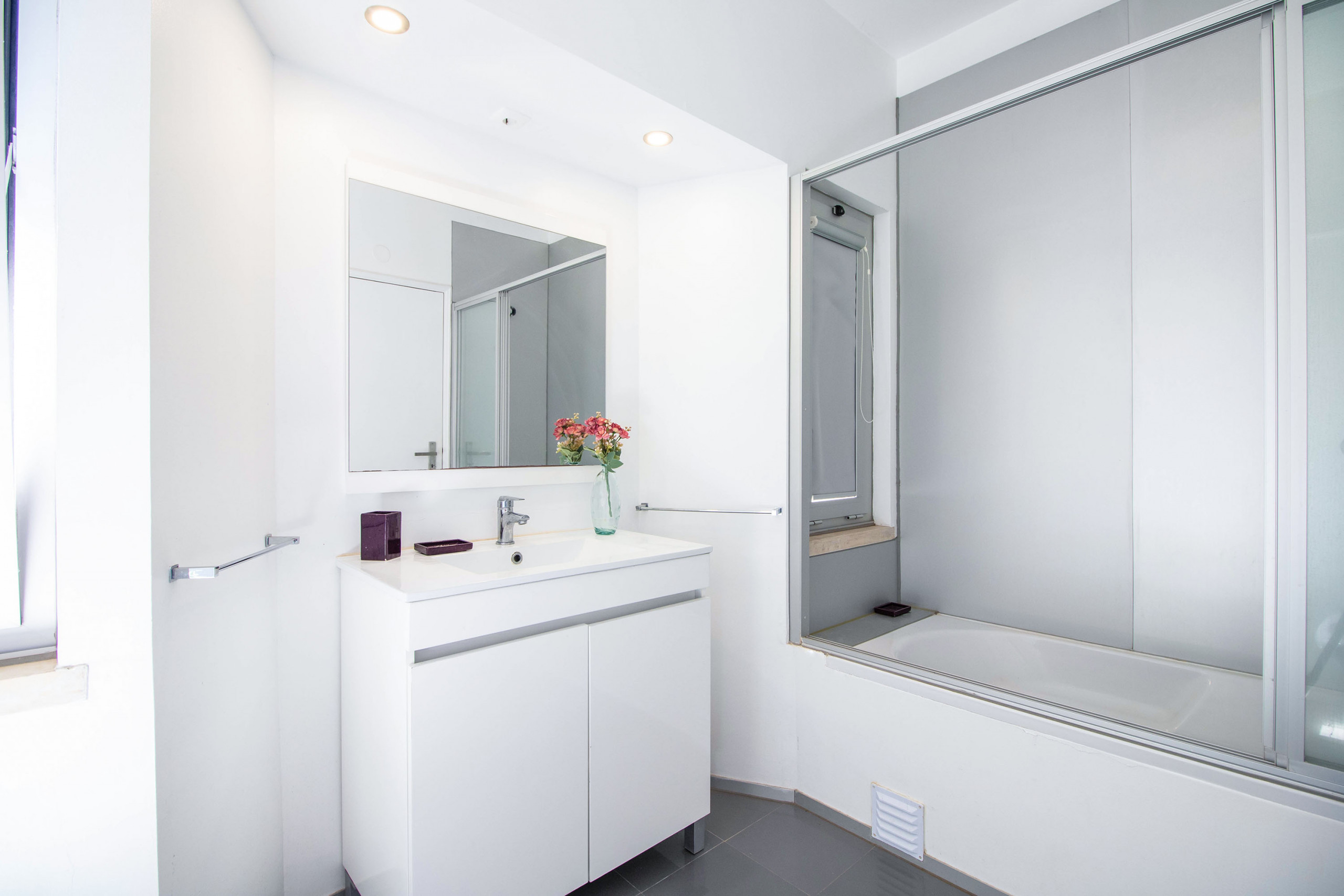 • 1er étage – Chambre avec lit double et salle de bain privative avec baignoire.
