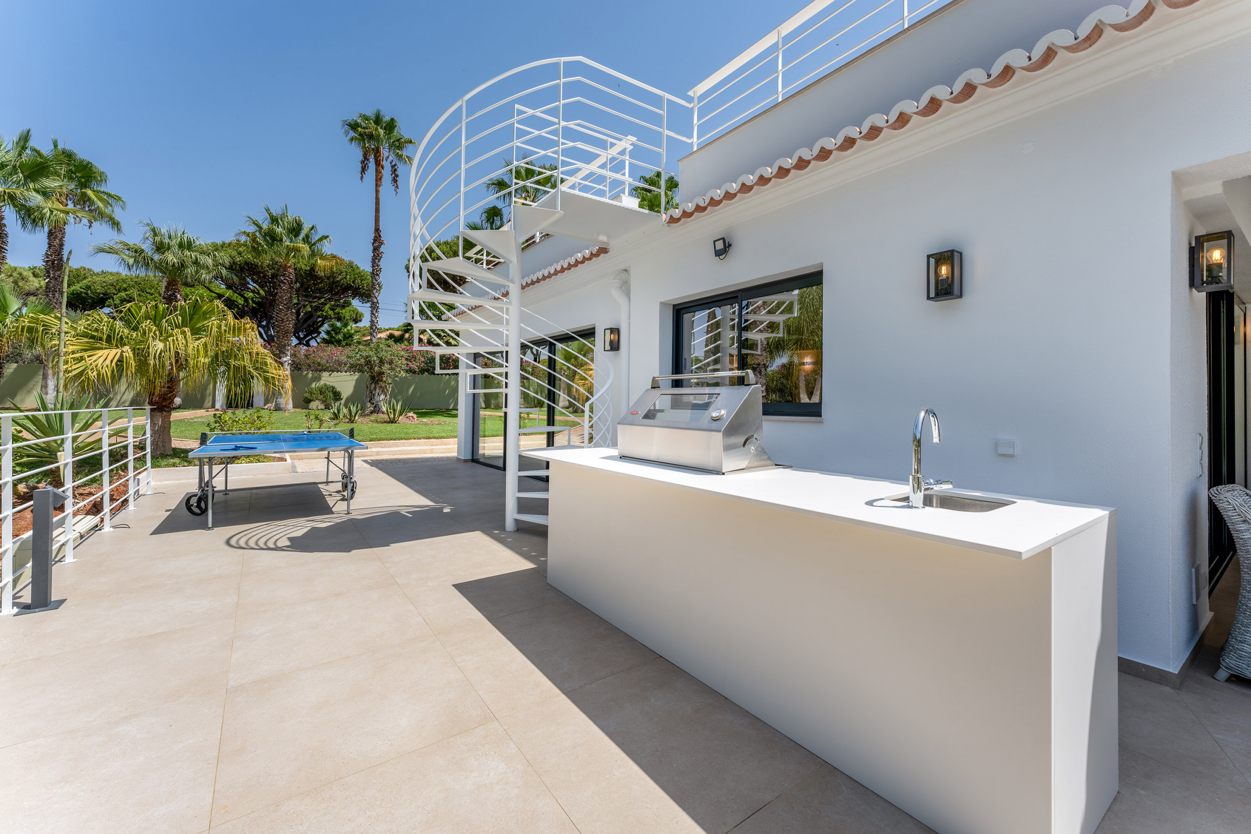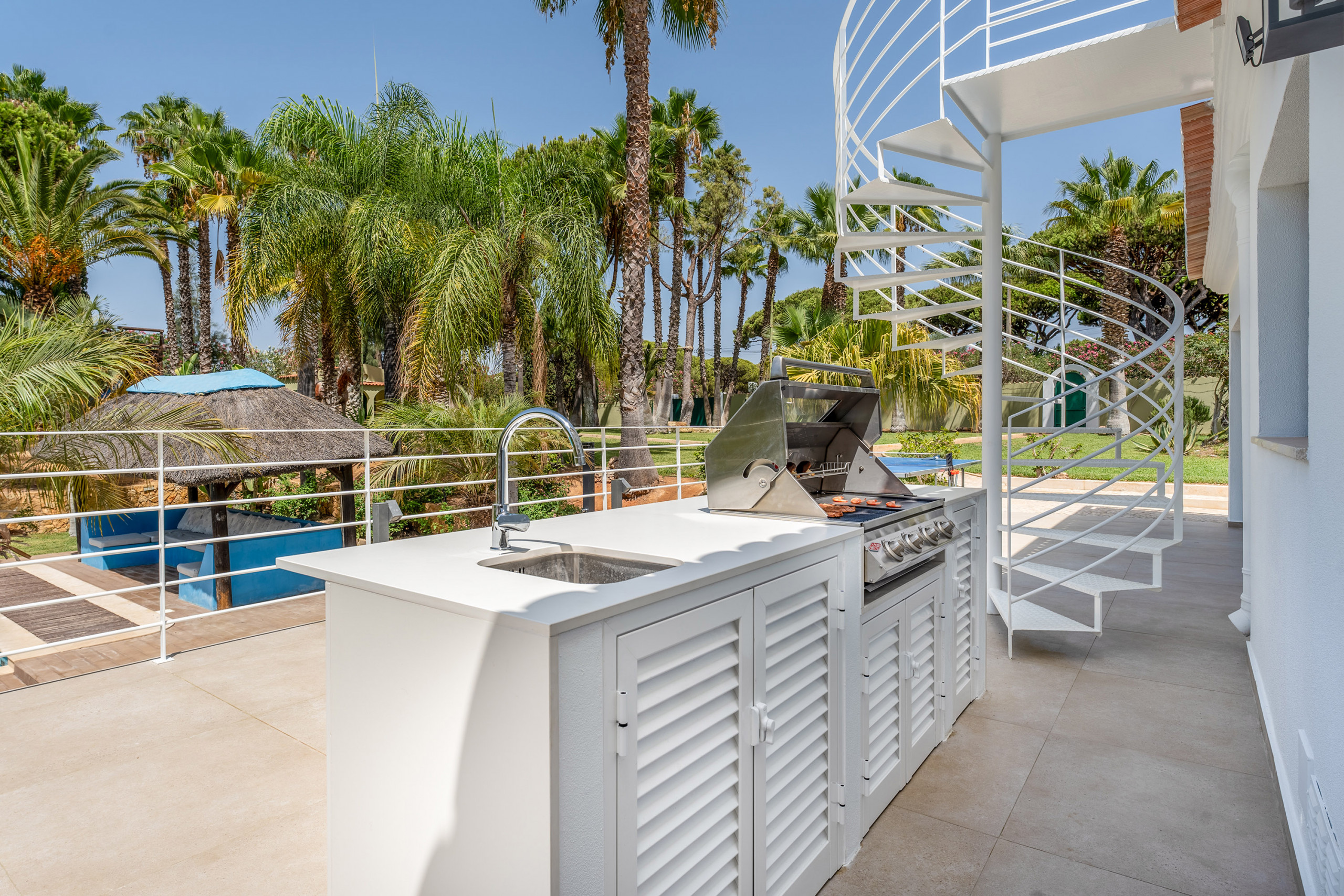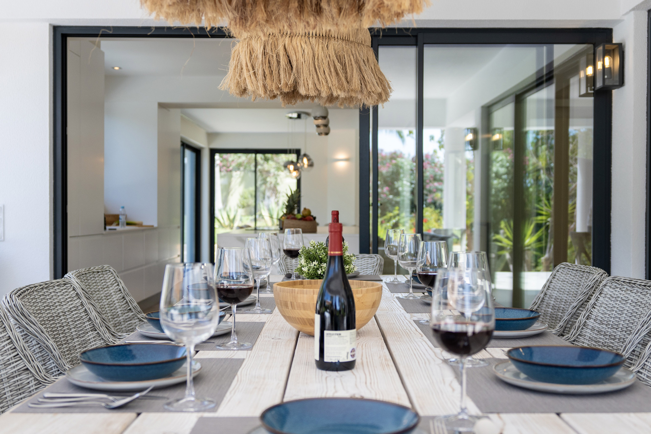 Une grande table de repas en plein air est la base des repas en extérieur, combinée à un barbecue à proximité, la proximité de la cuisine et le mobilier extérieur donnant sur la zone de la piscine, vos efforts culinaires seront considérablement réduits.