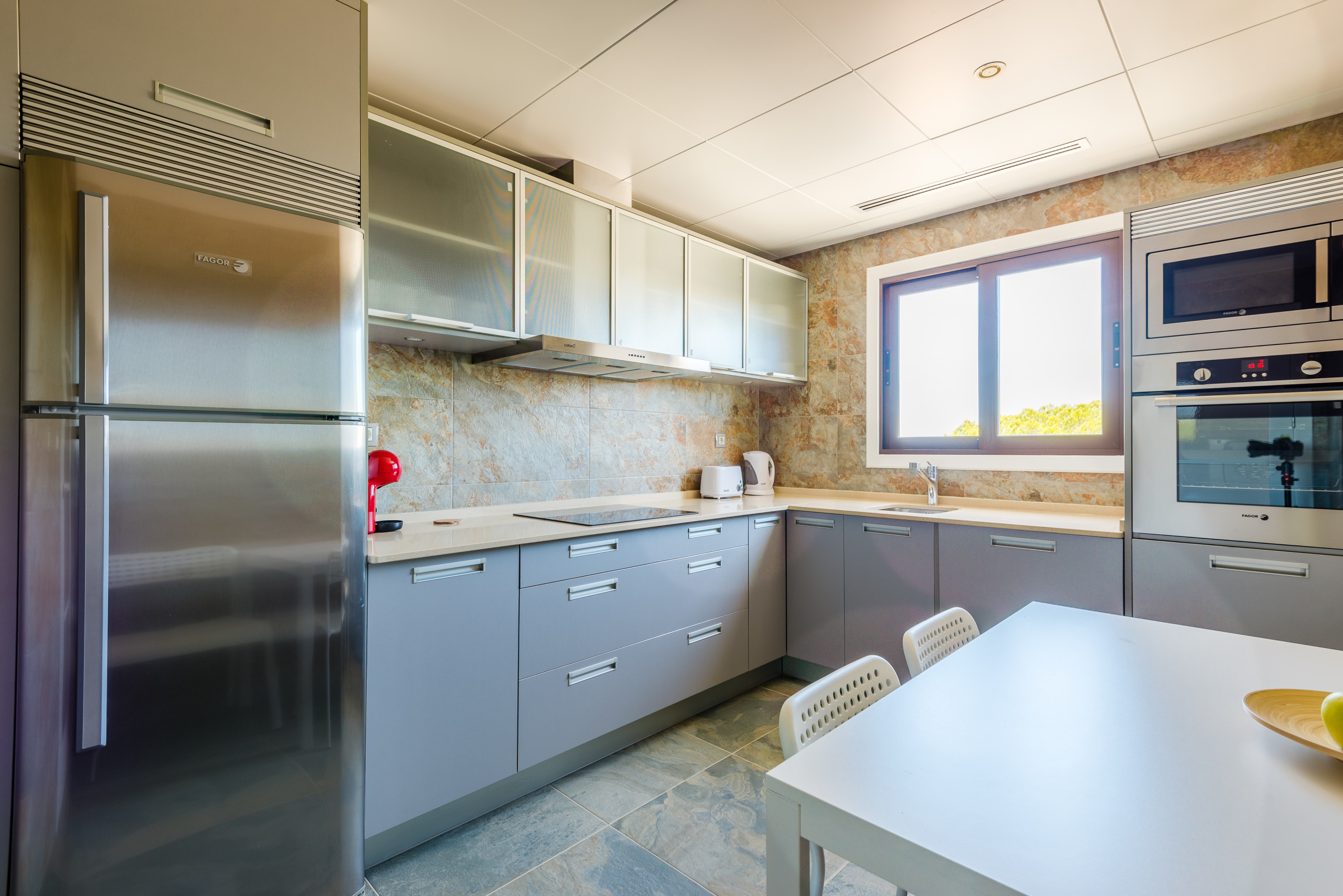 A cozinha contém frigorífico, microondas, forno, congelador, máquina de lavar roupa, máquina de lavar loiça, louça/talheres, utensílios/cozinha, cafeteira, torradeira e jarro eléctrico.