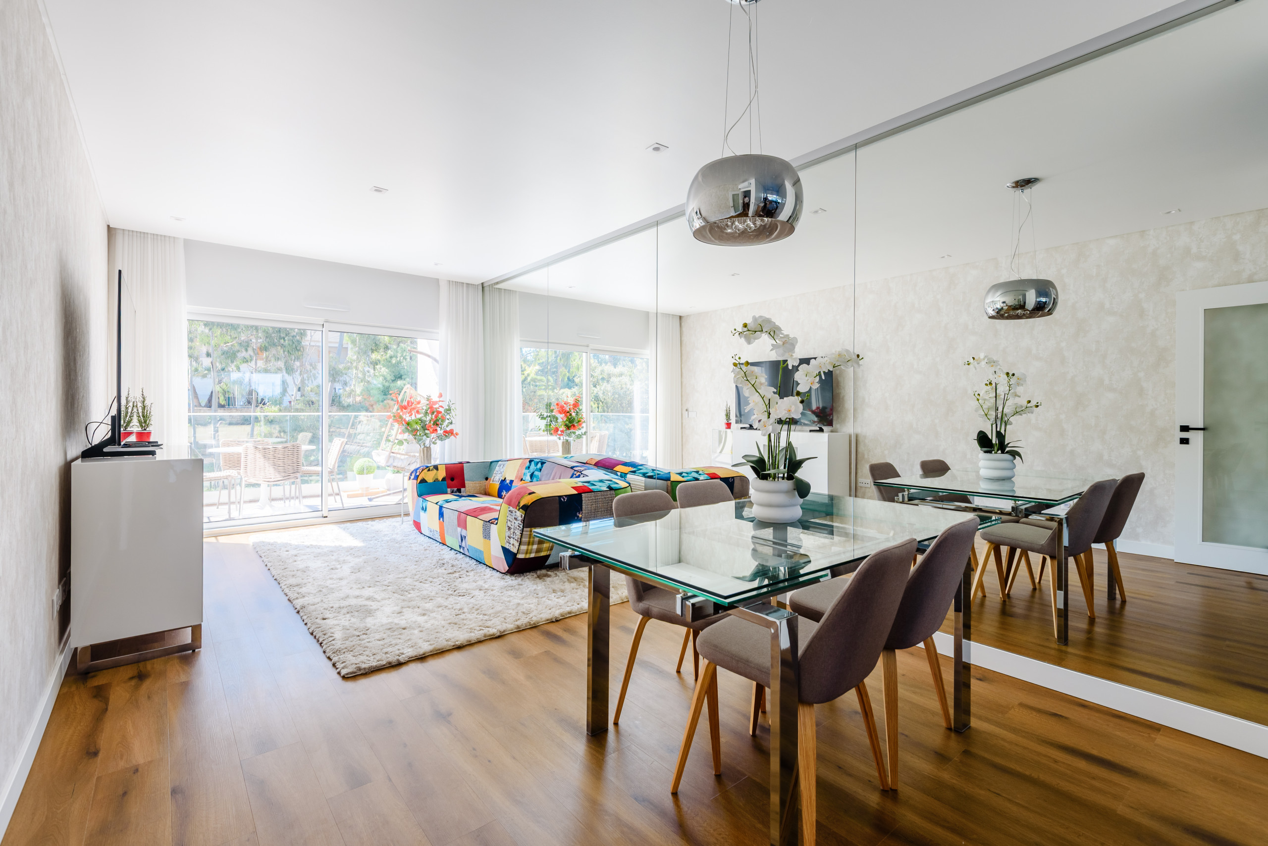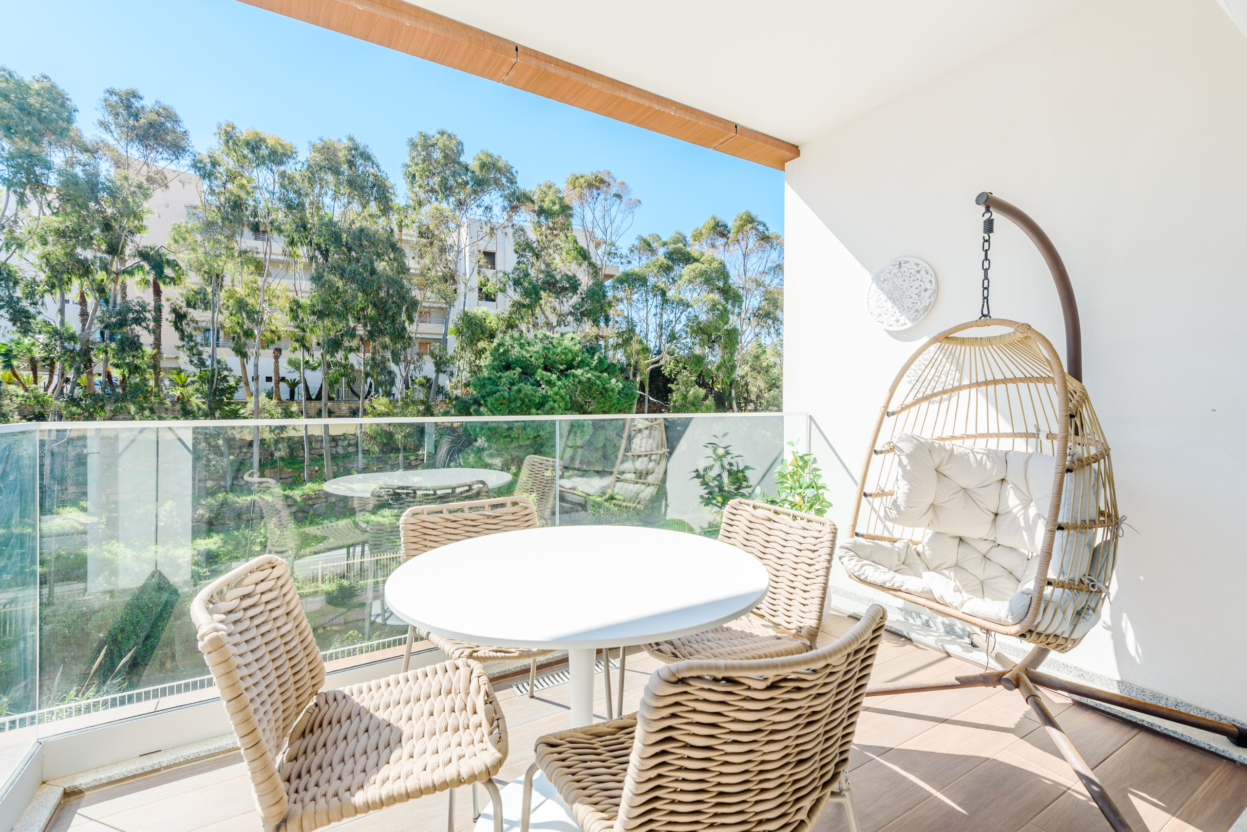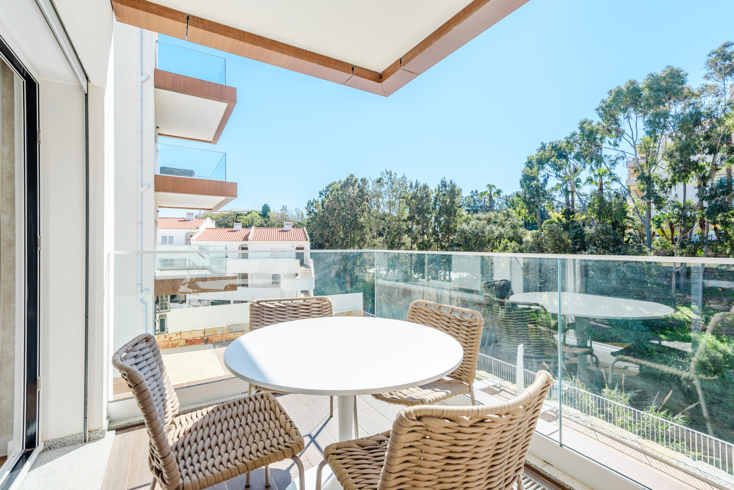 Concebido para até quatro hóspedes, o imóvel apresenta um espaço de estar amplo e luminoso, com acabamentos de alta qualidade em toda a sua extensão. Grandes janelas permitem a entrada de luz natural, e o aspeto voltado a sul realça a sensação de espaço e conforto. A área de estar comunica com uma varanda privativa, ideal para manhãs relaxadas ou para descontrair após um dia na praia.