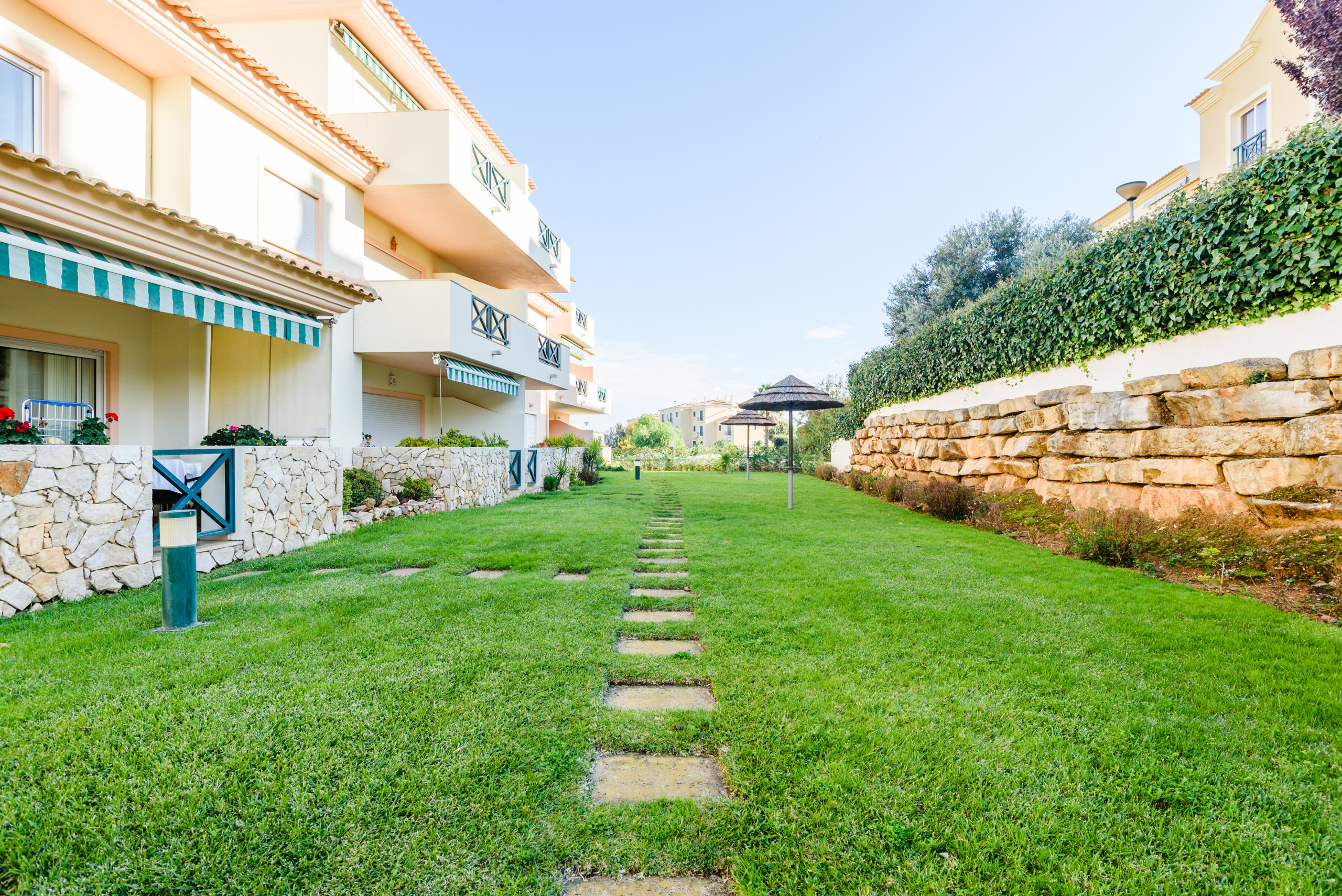 Alojamento de 70 m² confortável e moderno, com vistas para o jardim e piscina.