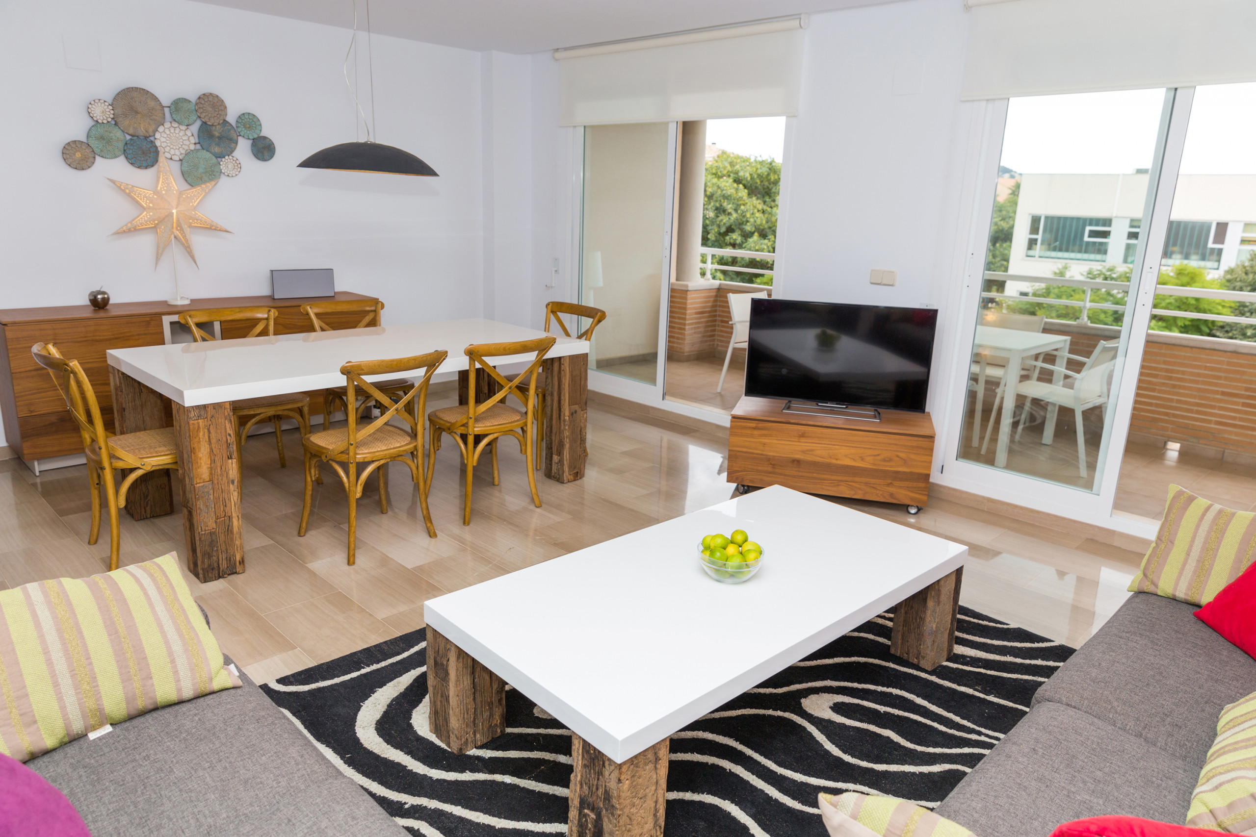 Decoración genial,muy limpio,muy amplio,muy completo en cuanto a todo (utensilios de cocina,mobiliario terrazas,hamacas para la playa/piscina),plaza de parking propia).Nuestro contacto Andrés (de Rock Rentals fue encantador dándonos ideas deopciones de visitas, restaurantes,ocio...y resolviendonos los problemillas iniciales con las persianas y el aire acondicionado.La piscina tb es espectacular,muy bonita,bien cuidada y abre hasta las 00h.Superrecomendable!!!!