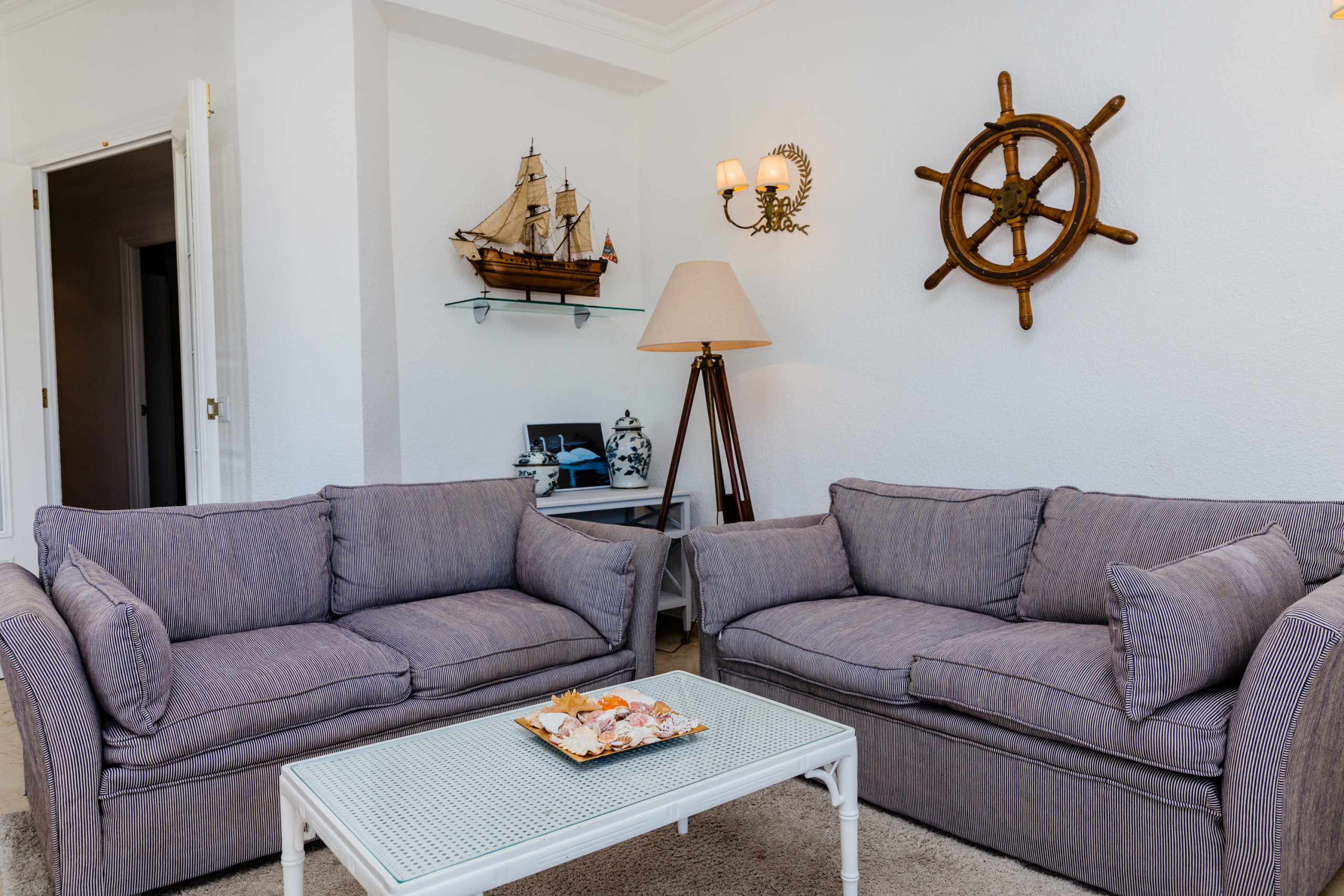 Dispõe de uma ampla sala de estar com sofás confortáveis, TV, WiFi grátis e portas duplas que se abrem para uma grande varanda com vista para a praia e para o pequeno porto do Arenal. A cozinha independente está totalmente equipada com frigorífico, micro-ondas, forno, congelador, máquina de lavar, máquina de lavar loiça, louça e talheres, utensílios de cozinha, máquina de café, torradeira, chaleira e espremedor. Existem 3 bonitos quartos para descanso, 1 deles com cama de casal, outros 2 com duas camas individuais cada um. A varanda mobilada completa a experiência de um apartamento para o desfrute e relaxamento em família ou a dois.