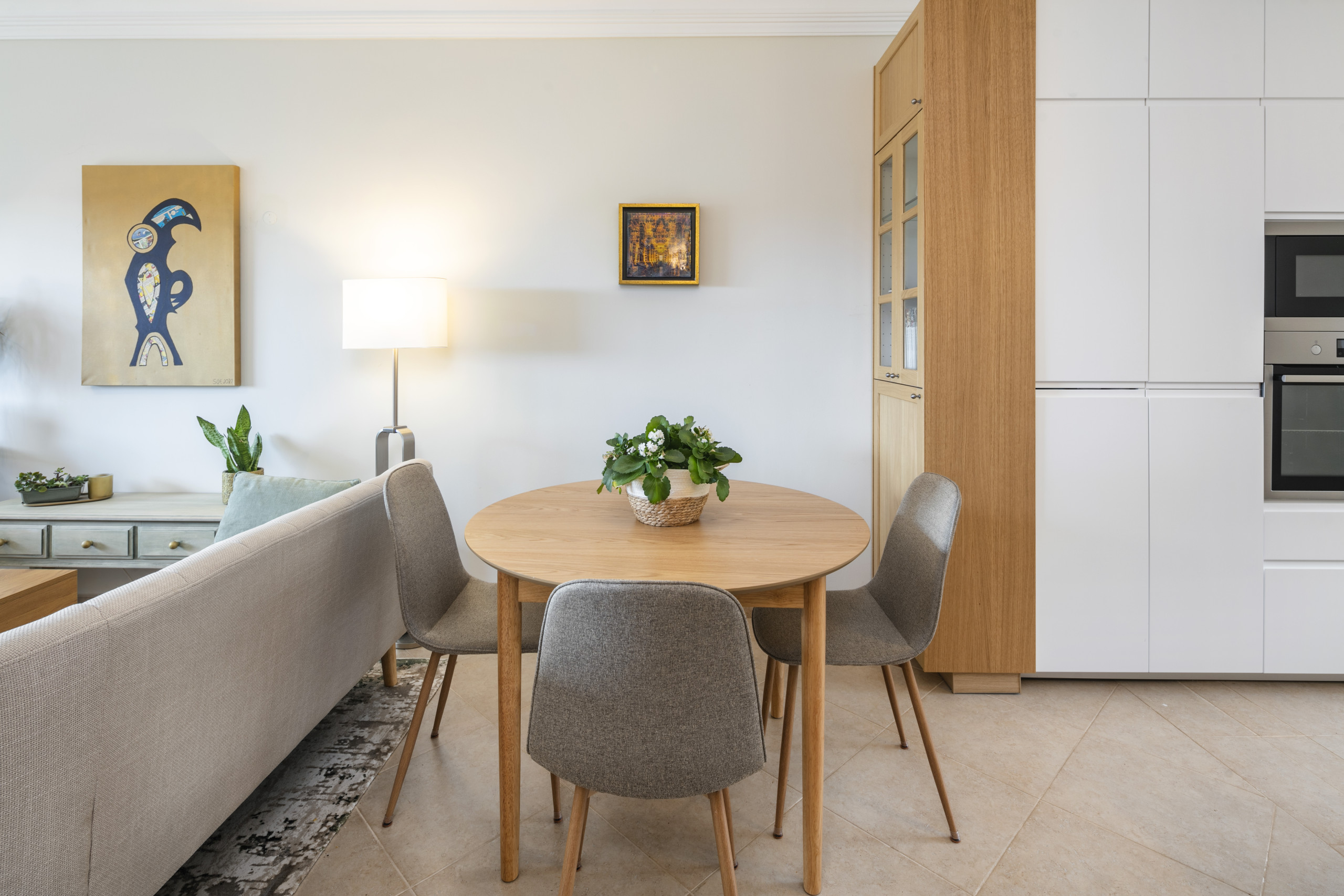 O apartamento possui dois quartos bem equipados, incluindo uma cama de casal e duas camas individuais, garantindo arranjos de dormida flexíveis para até quatro hóspedes. O ar condicionado de alta qualidade mantém o espaço fresco nos dias quentes do Algarve, e o WiFi gratuito garante que fique ligado durante toda a sua estadia.