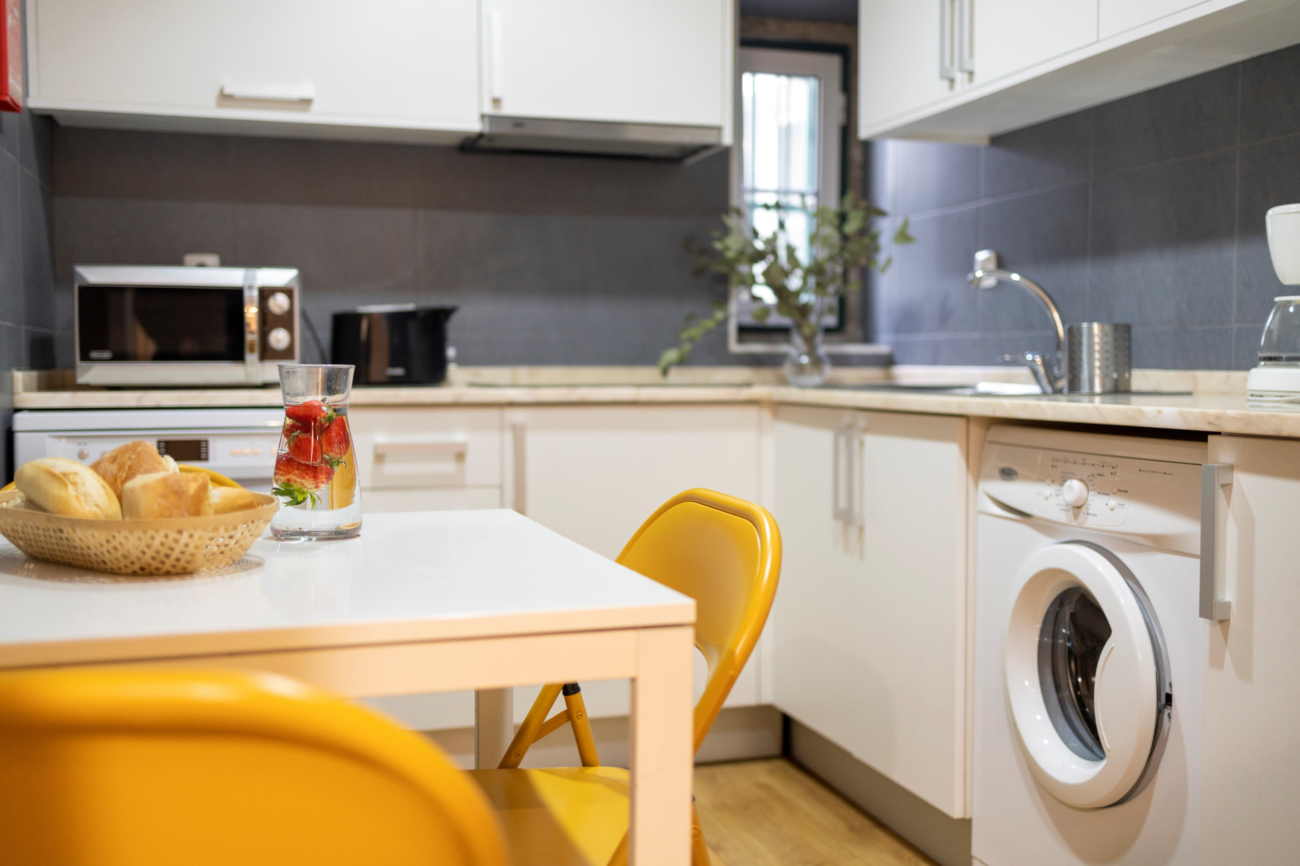 Very nice apartment, it had all We needed. We loved the balcony, just big enough for two chairs and a small table. It had a view of the river and we saw the cruise ships come and go. Nice to have a washing Maschine. You get good exercise taking the sver mais