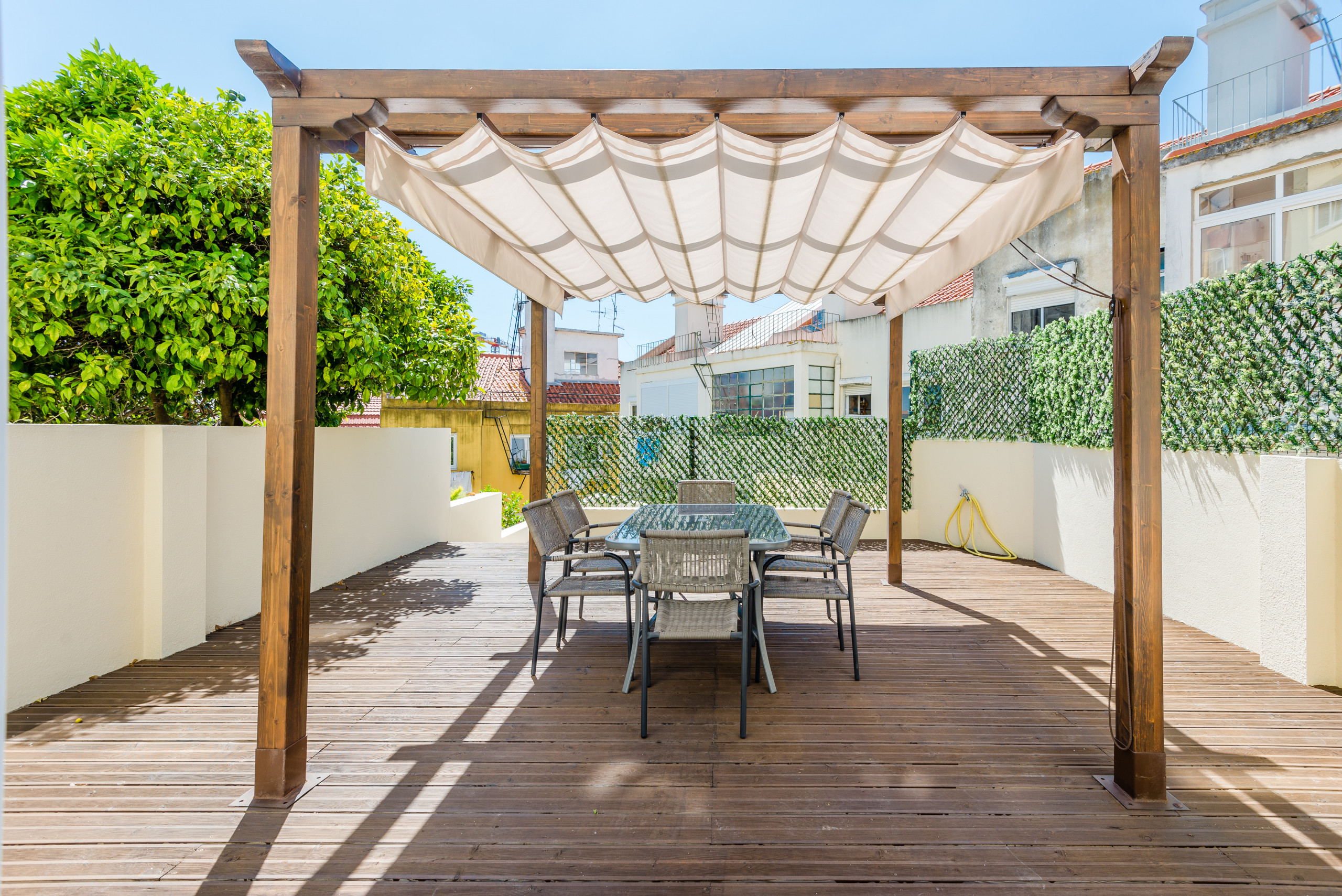 Este é um apartamento de rés-do-chão totalmente renovado com 3 quartos e jardim, no centro de Lisboa.