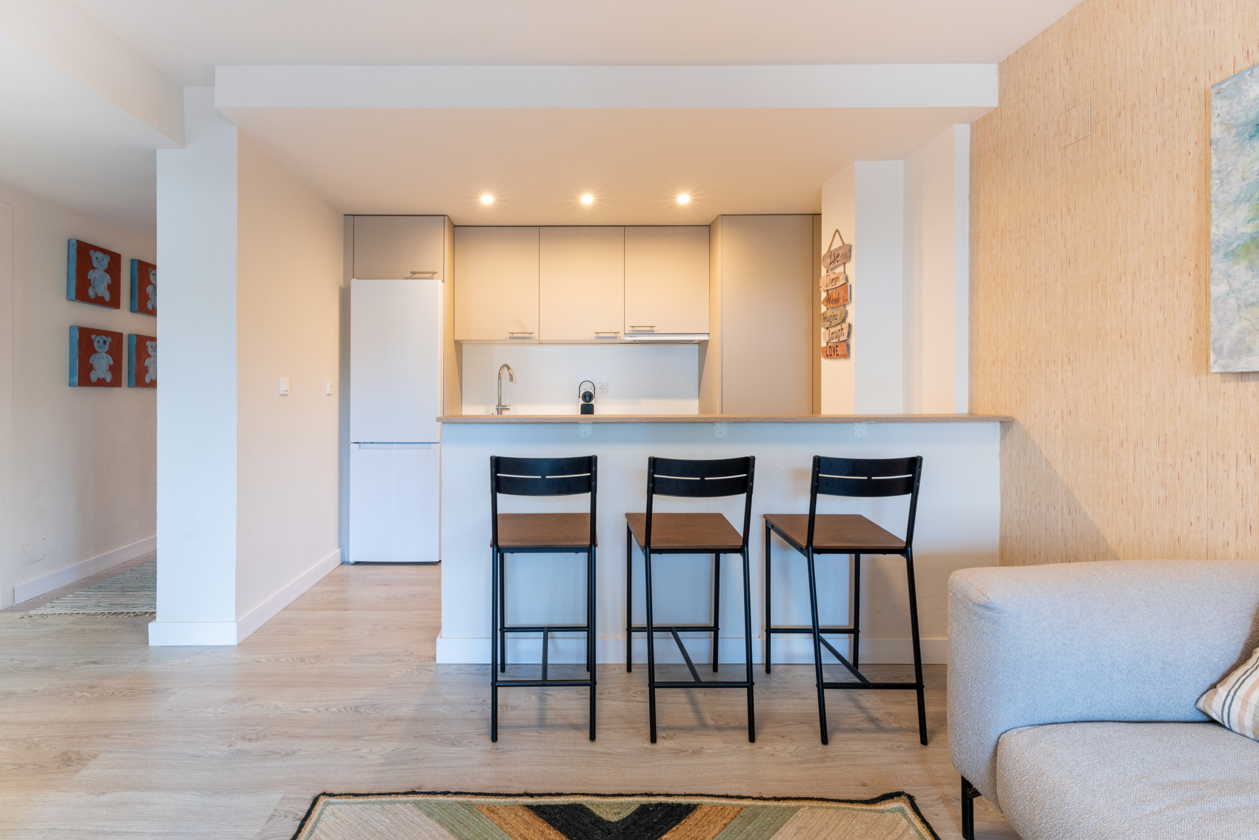 The interior of the apartment has a modern style with high quality furniture throughout the apartment for a homely feeling and is ideal for both vacation and work.