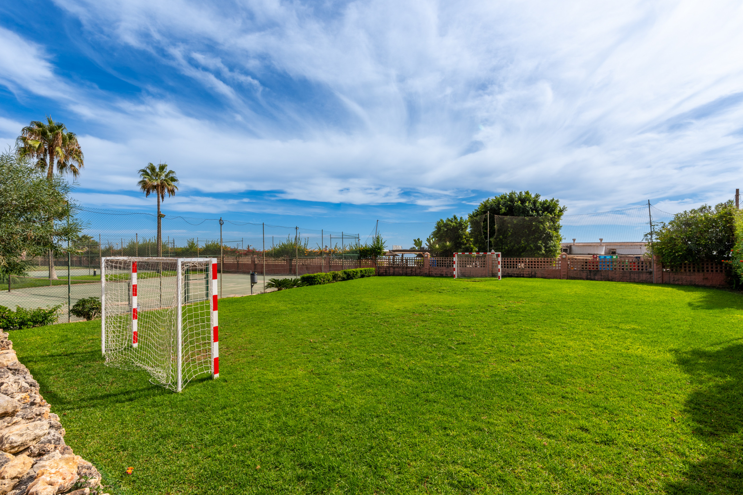 The common area is beautifully maintained with green space and palm trees. There is free access to 3 large pool areas, and free access to 2 tennis courts and football field. The main pool is accessible the whole year.