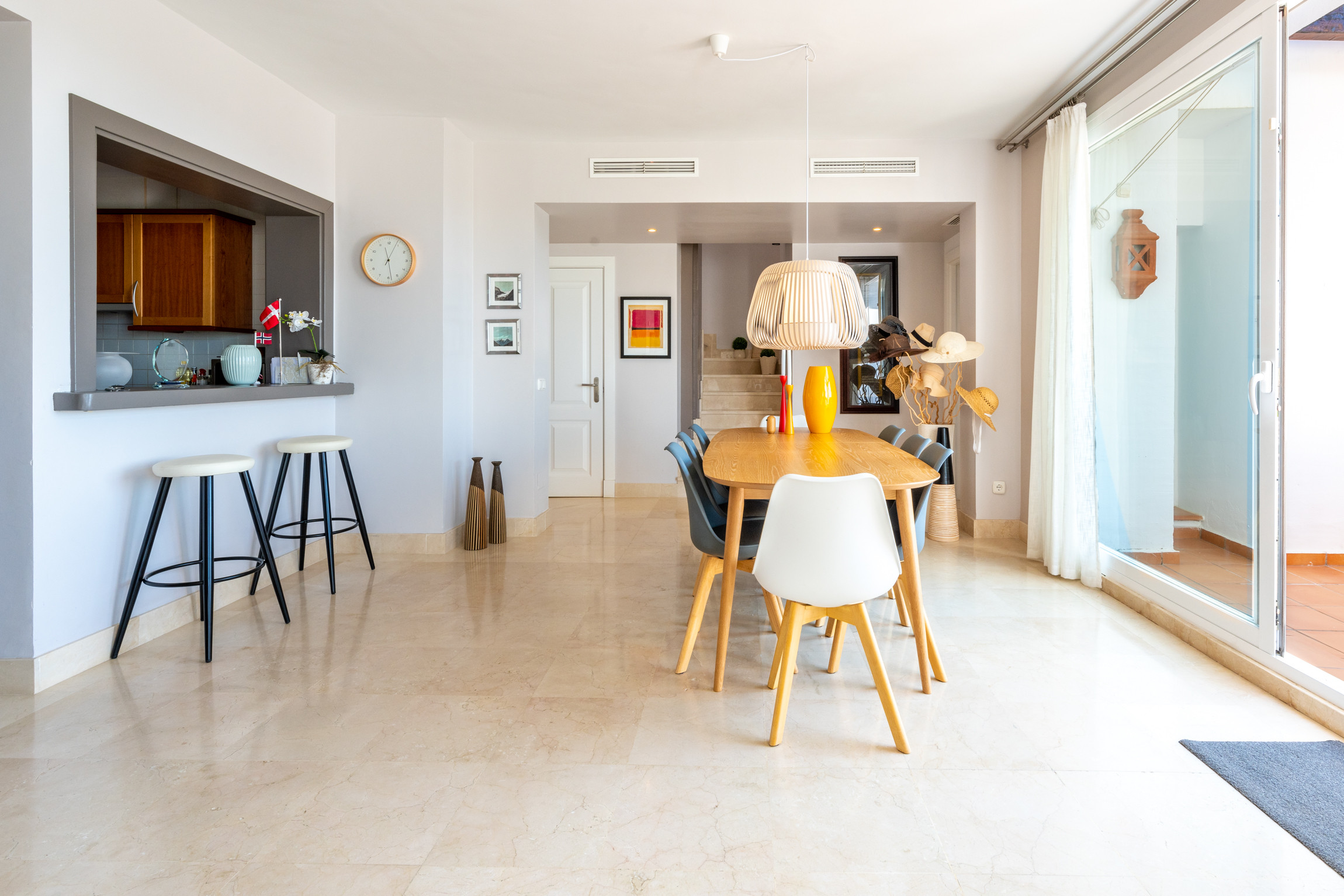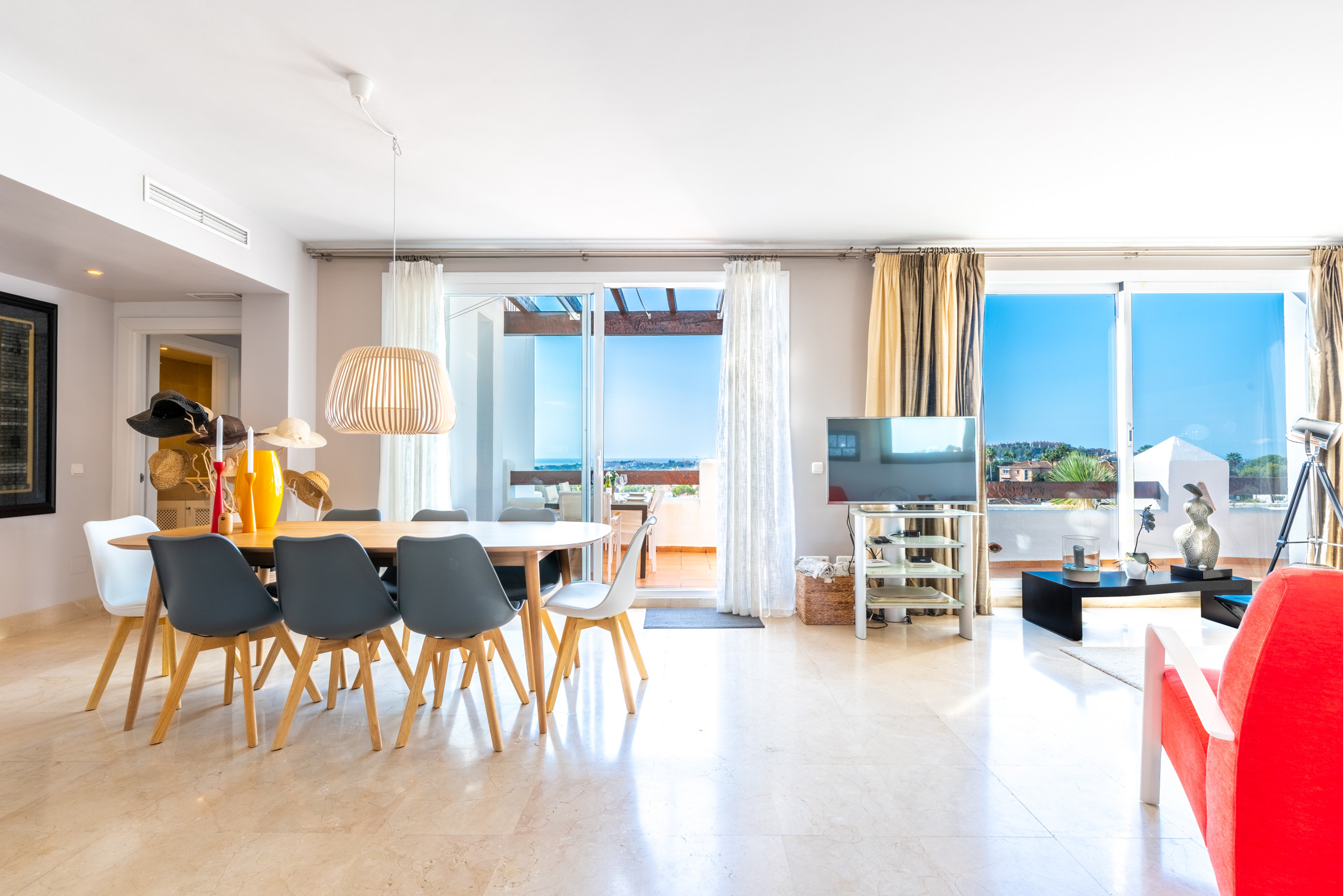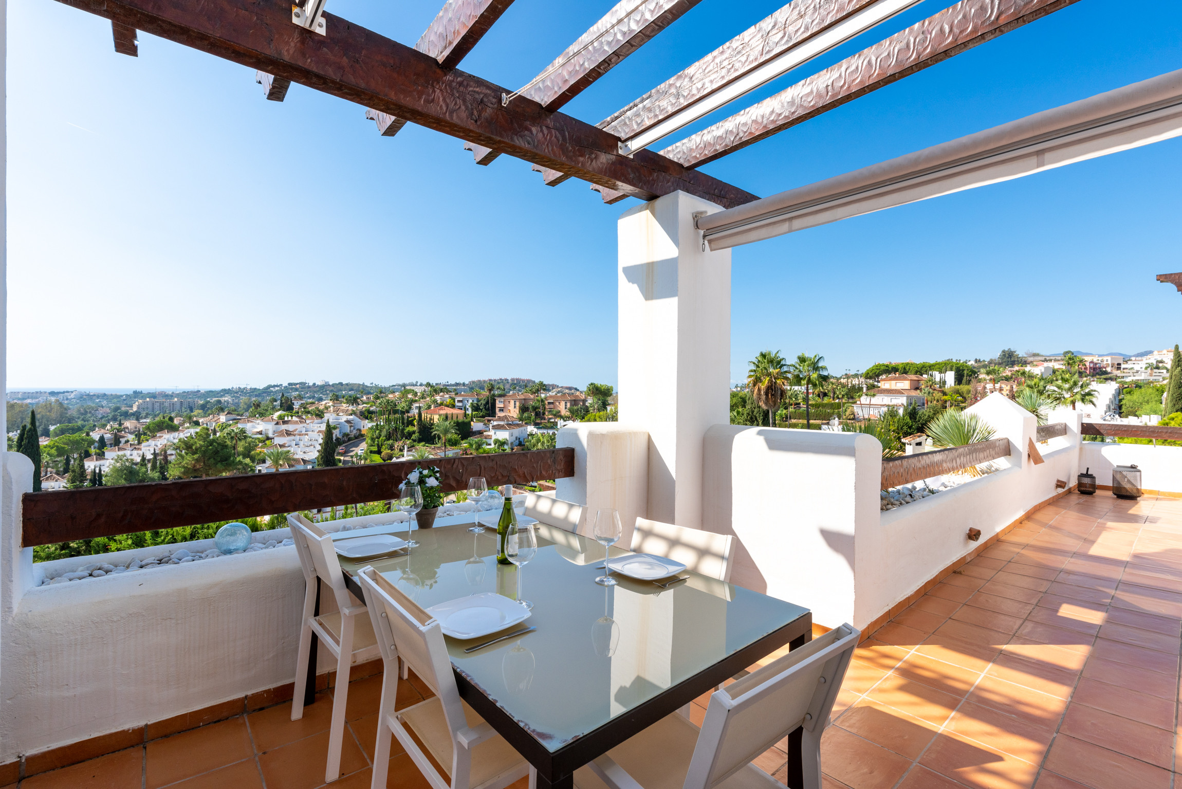 Bem-vindo a este elegante duplex a poucos minutos de Marbella e Puerto Banús. Com 180 m² de área interior, duas grandes varandas e vistas panorâmicas sobre o Mediterrâneo, as montanhas e as colinas verdes de Nueva Andalucía, é o local ideal para relaxar e explorar.