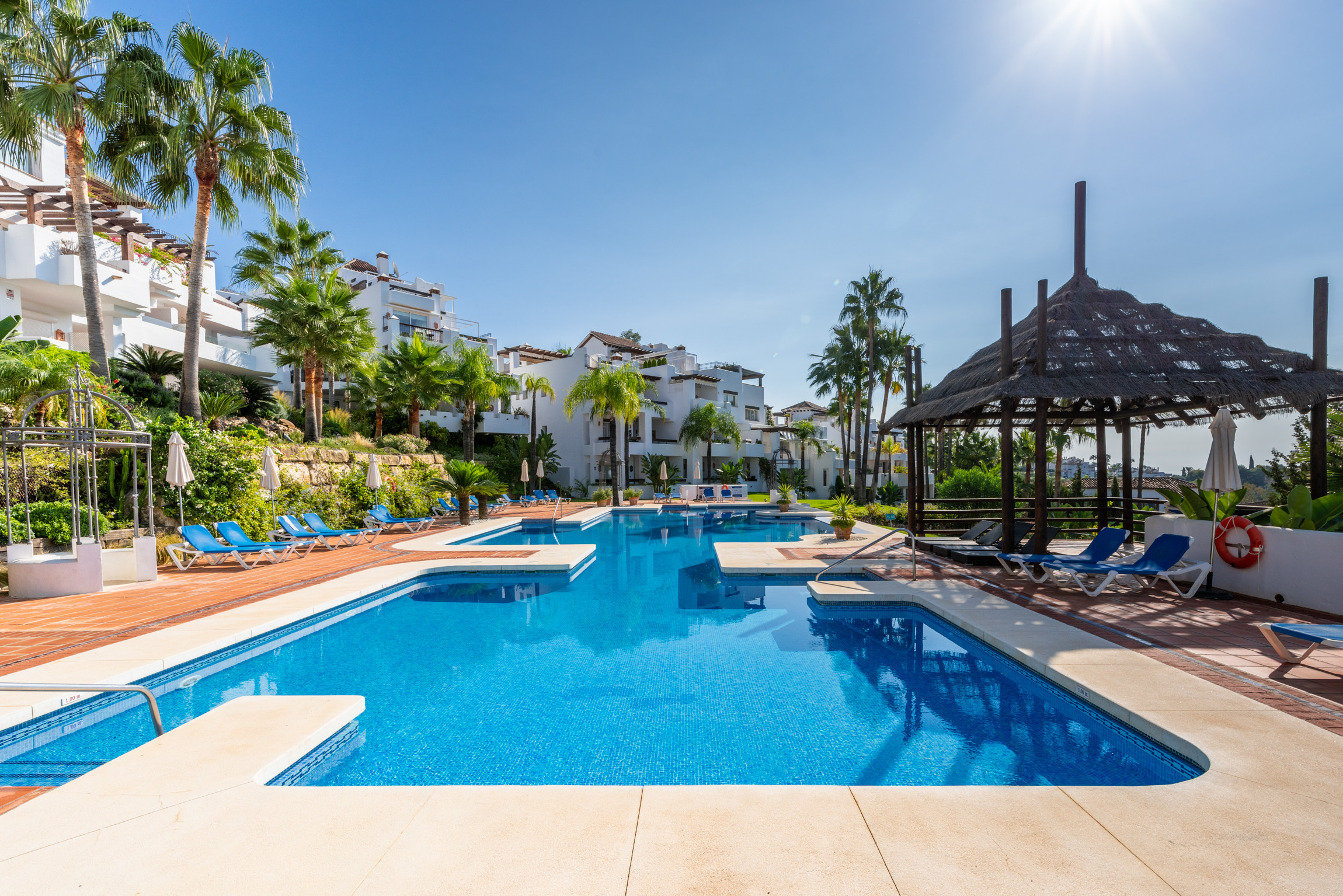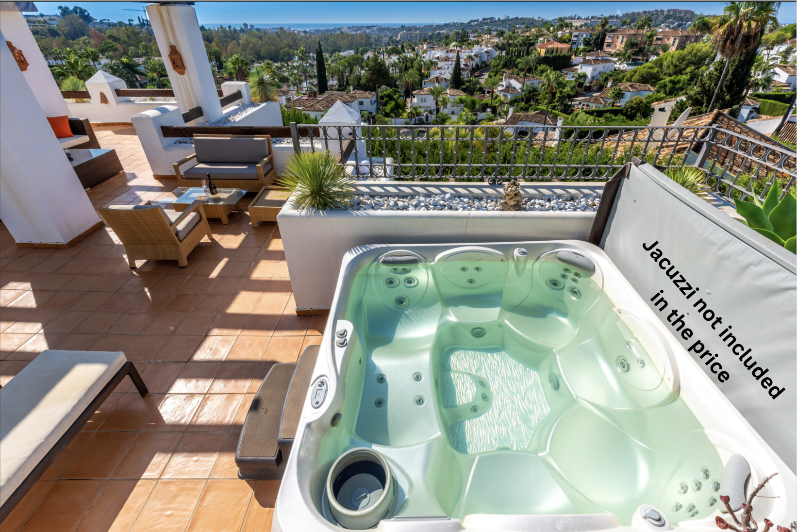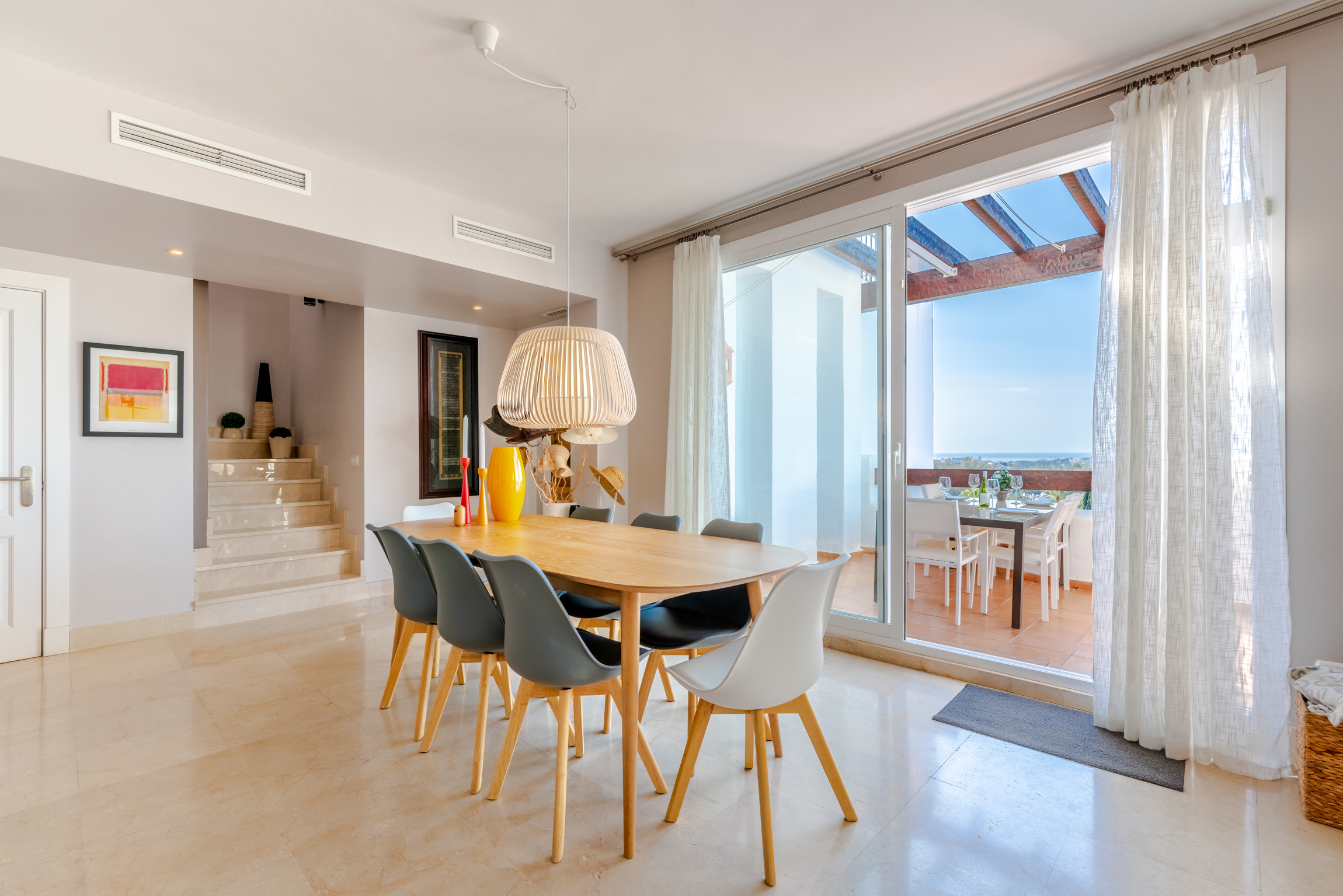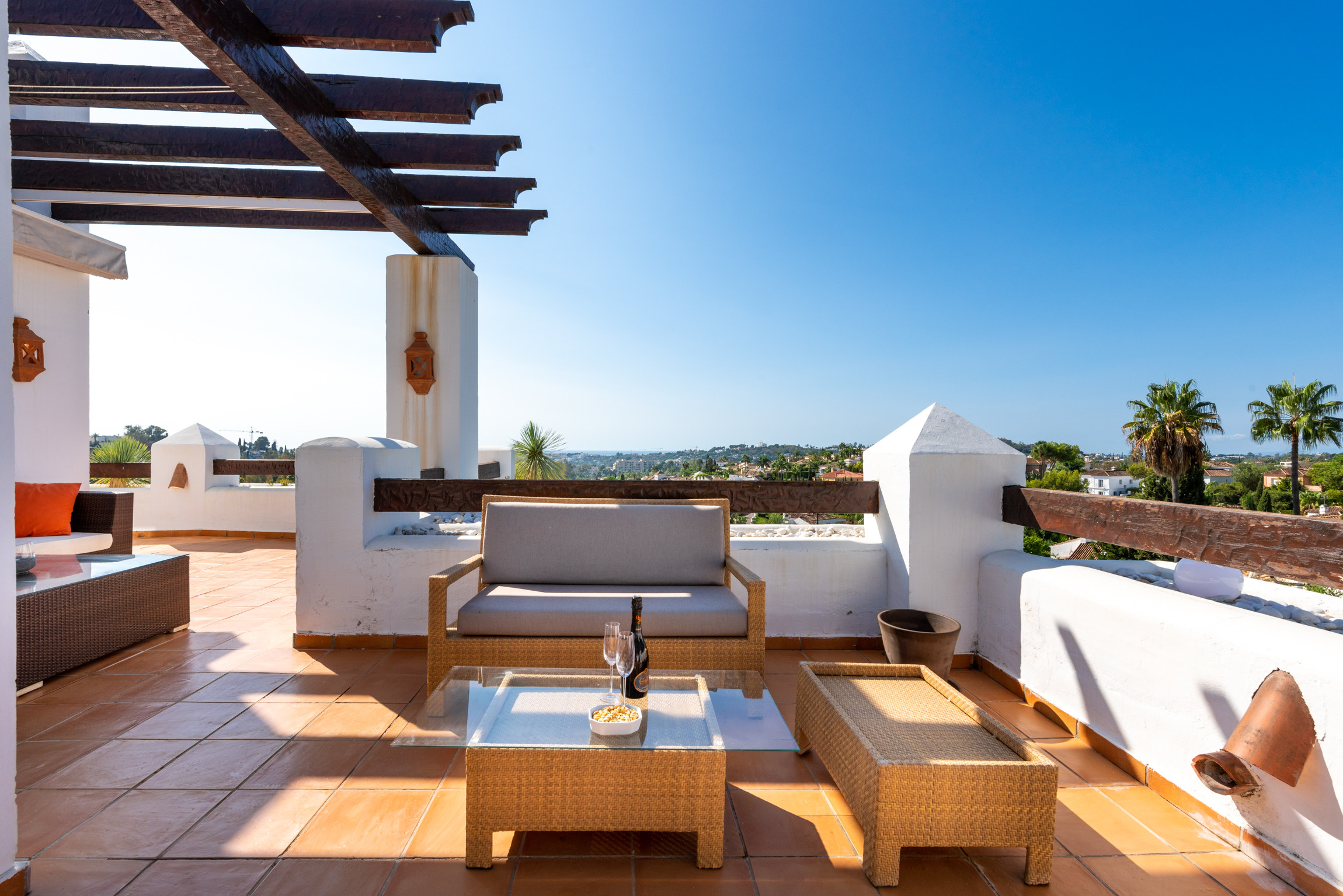 Bem-vindo a este elegante duplex a poucos minutos de Marbella e Puerto Banús. Com 180 m² de área interior, duas grandes varandas e vistas panorâmicas sobre o Mediterrâneo, as montanhas e as colinas verdes de Nueva Andalucía, é o local ideal para relaxar e explorar.