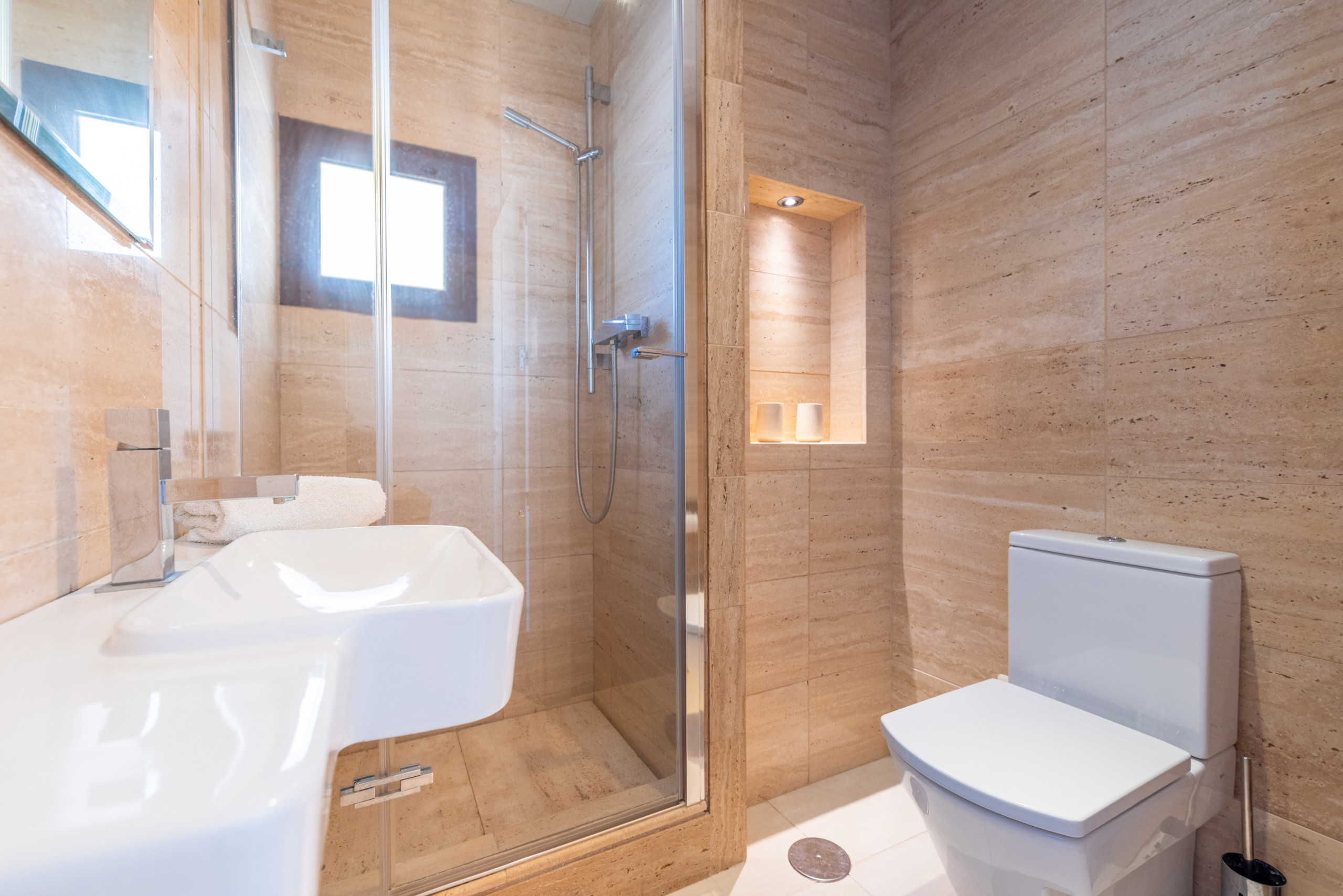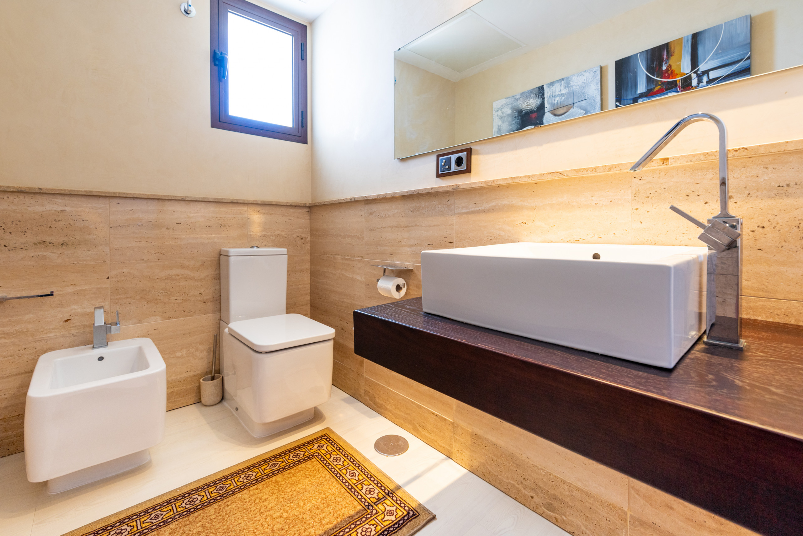 The apartment has 3 bedrooms located on the top floor, all with views of the Mediterranean, 2 bathrooms and a guest toilet.