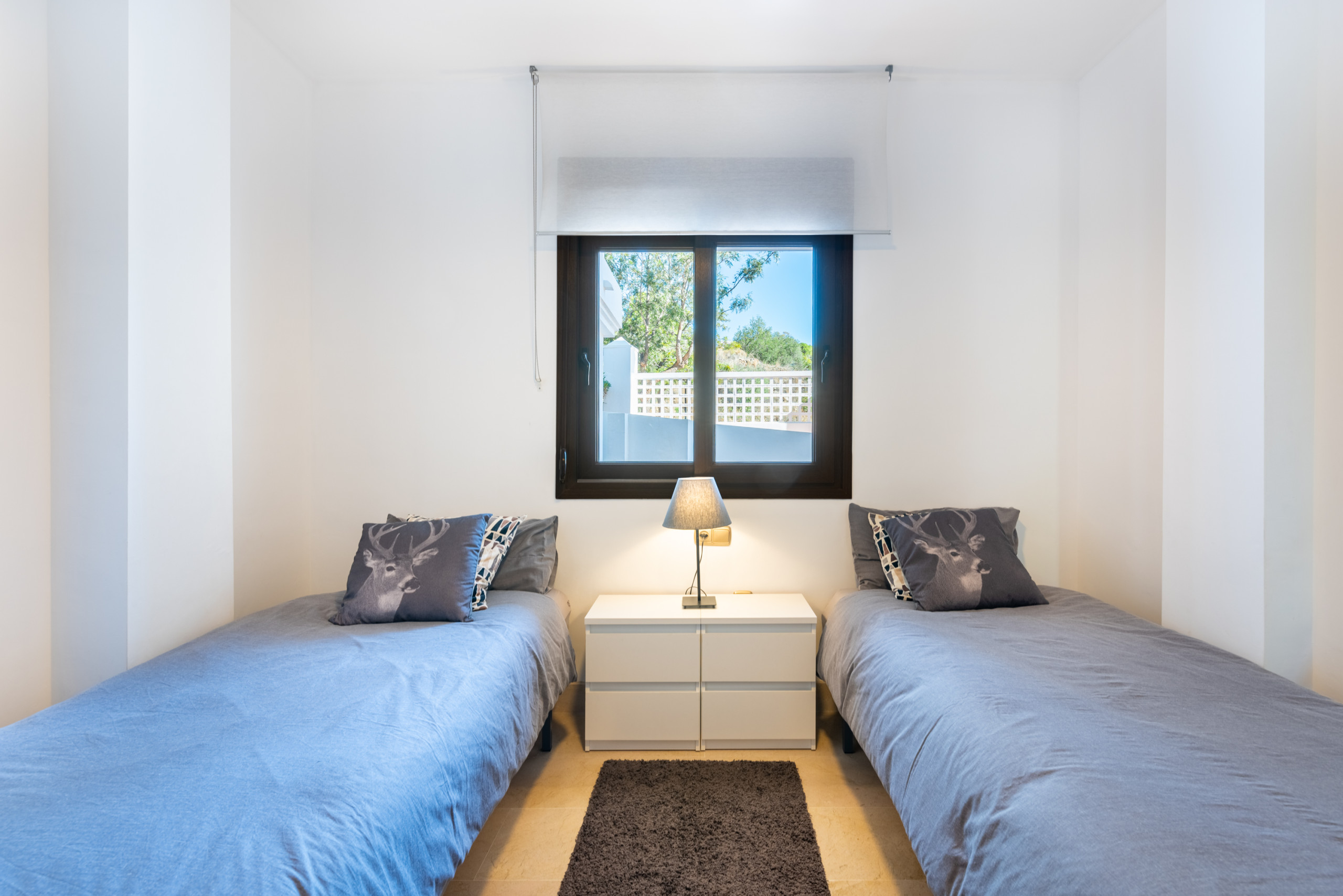 • Bedroom 2: 2 single beds, air conditioning, and blinds.