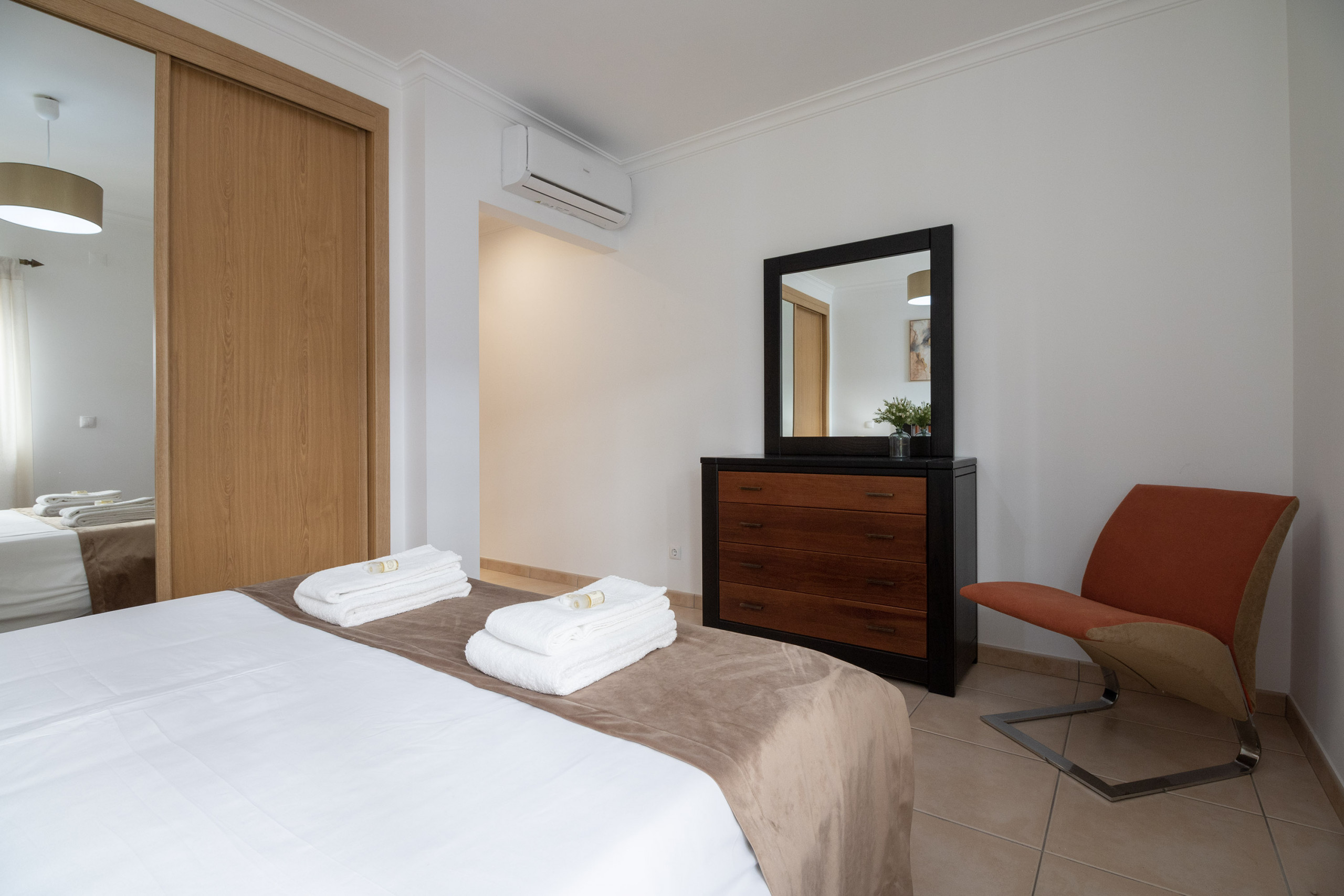 Com capacidade para 4 pessoas, este apartamento é constituído por 2 quartos, um quarto com cama de casal e outro com 2 camas individuais, ambos equipados com ar condicionado.