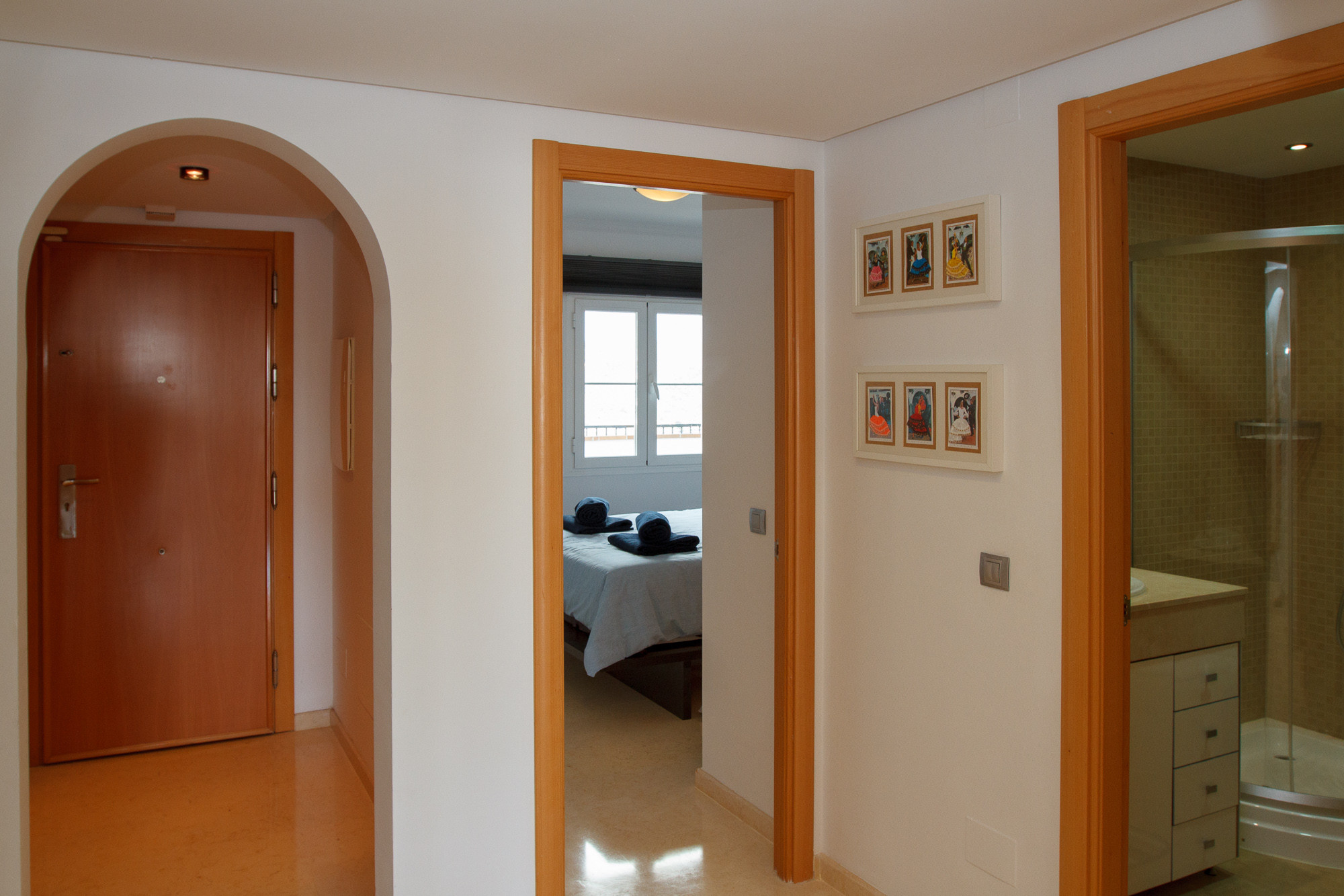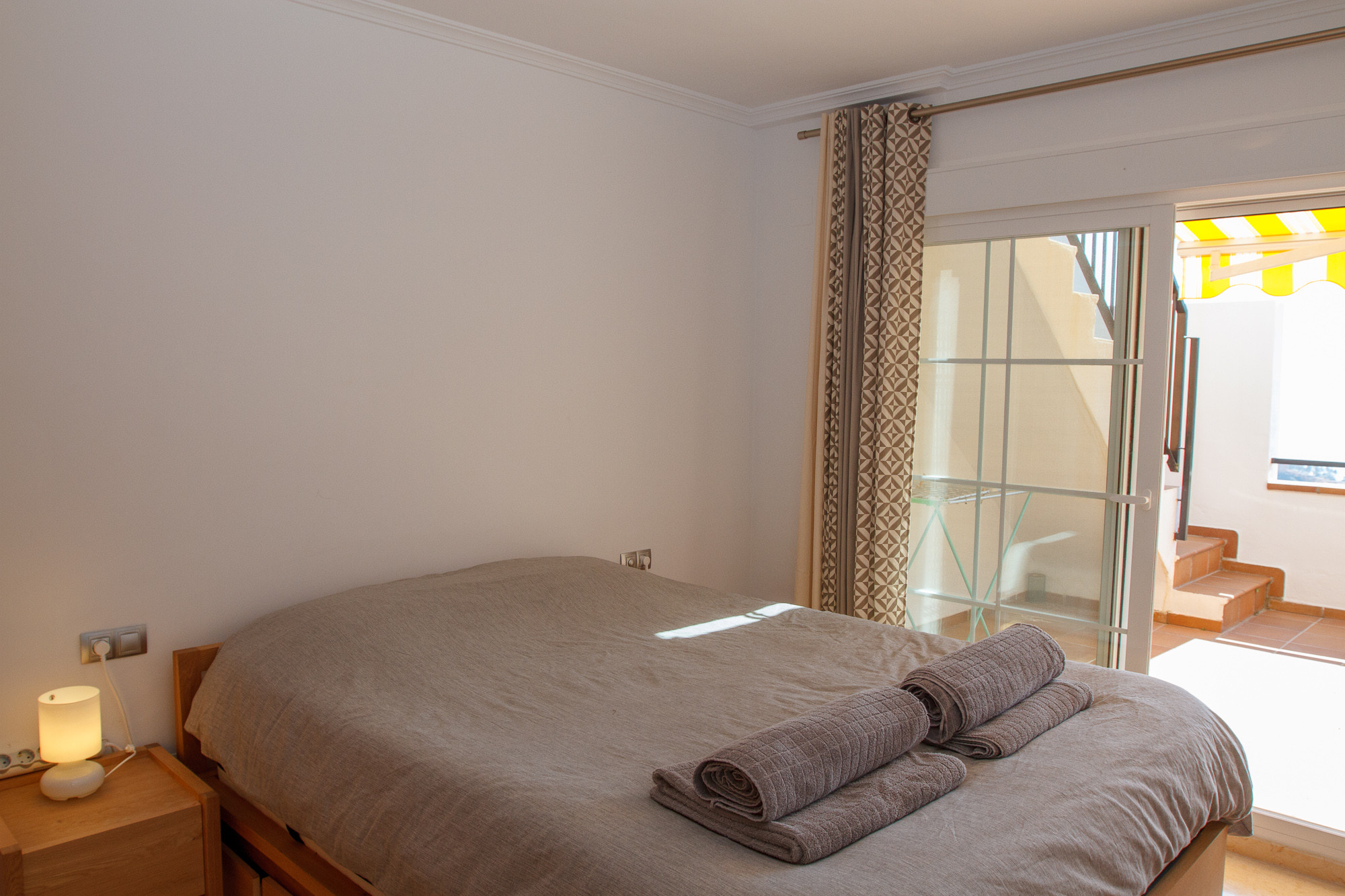 The apartment has two bedrooms, both with comfortable double beds. One of the bedrooms has sliding glass doors, with direct access to the terrace and you can wake up to a spectacular view!