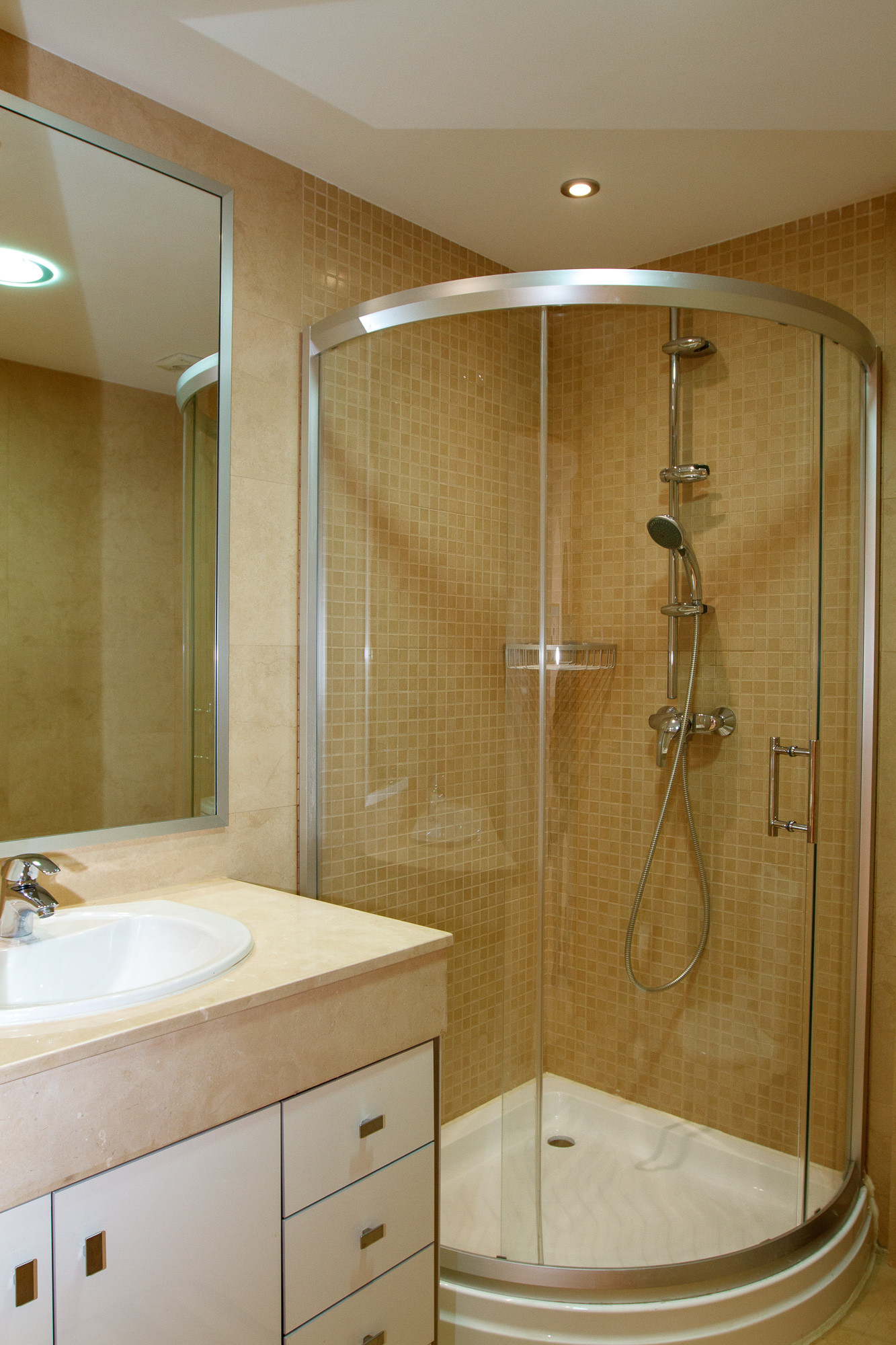 There are two bathrooms in the apartment, one of which has a bathtub and the other a shower.