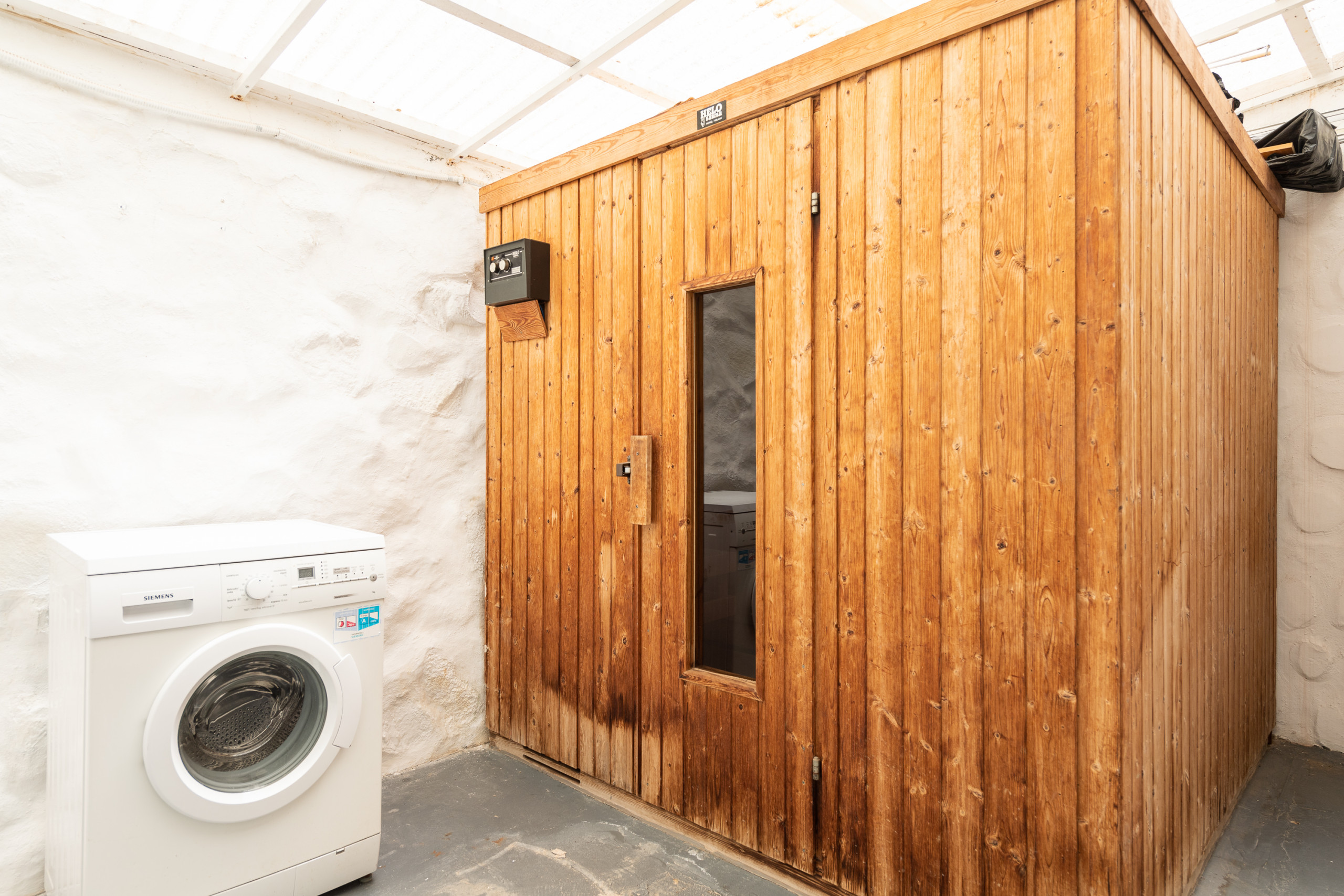 Tem diferentes espaços exteriores, como dois grandes terraços e uma varanda equipada com mobiliário de jardim. Você pode desfrutar da churrasqueira e de um espaço configurado como uma sala de jantar ao ar livre. Destacamos a nossa sauna com capacidade para 5 pessoas.