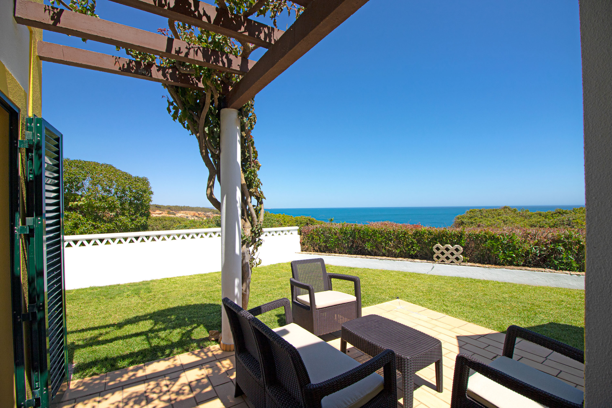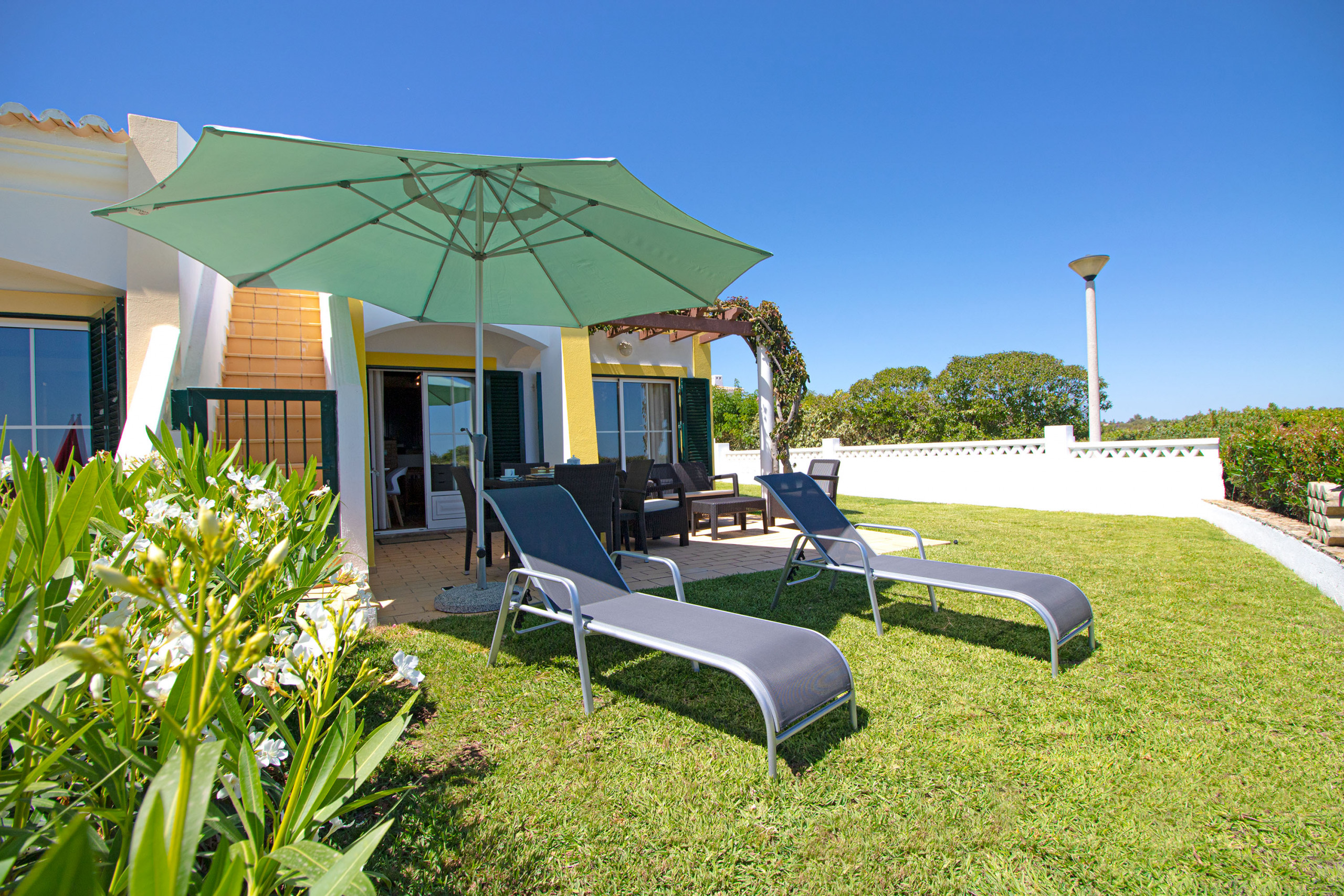 Existe mobiliário e mesa de jantar com cadeiras no jardim, poderá fazer usufruto do grelhador móvel para poder confecionar refeições e passar tempo com a família no exterior, sempre com uma magnifica vista mar.