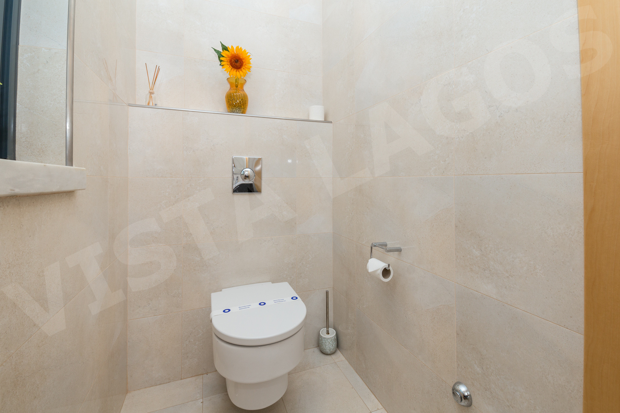 Uma casa de banho de cortesia também se localiza neste nível.