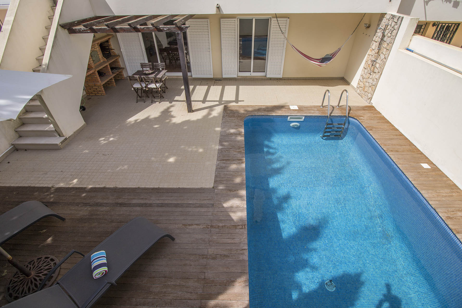 A área exterior possui uma refrescante piscina rodeada com deck, as suas dimensões são cerca de 6 metros por 3 de largura, a profundidade varia de 1m na zona de pouca profundidade a 1,80m na zona mais funda. As espreguiçadeiras e a rede de baloiço tornam esta área mais confortável.
