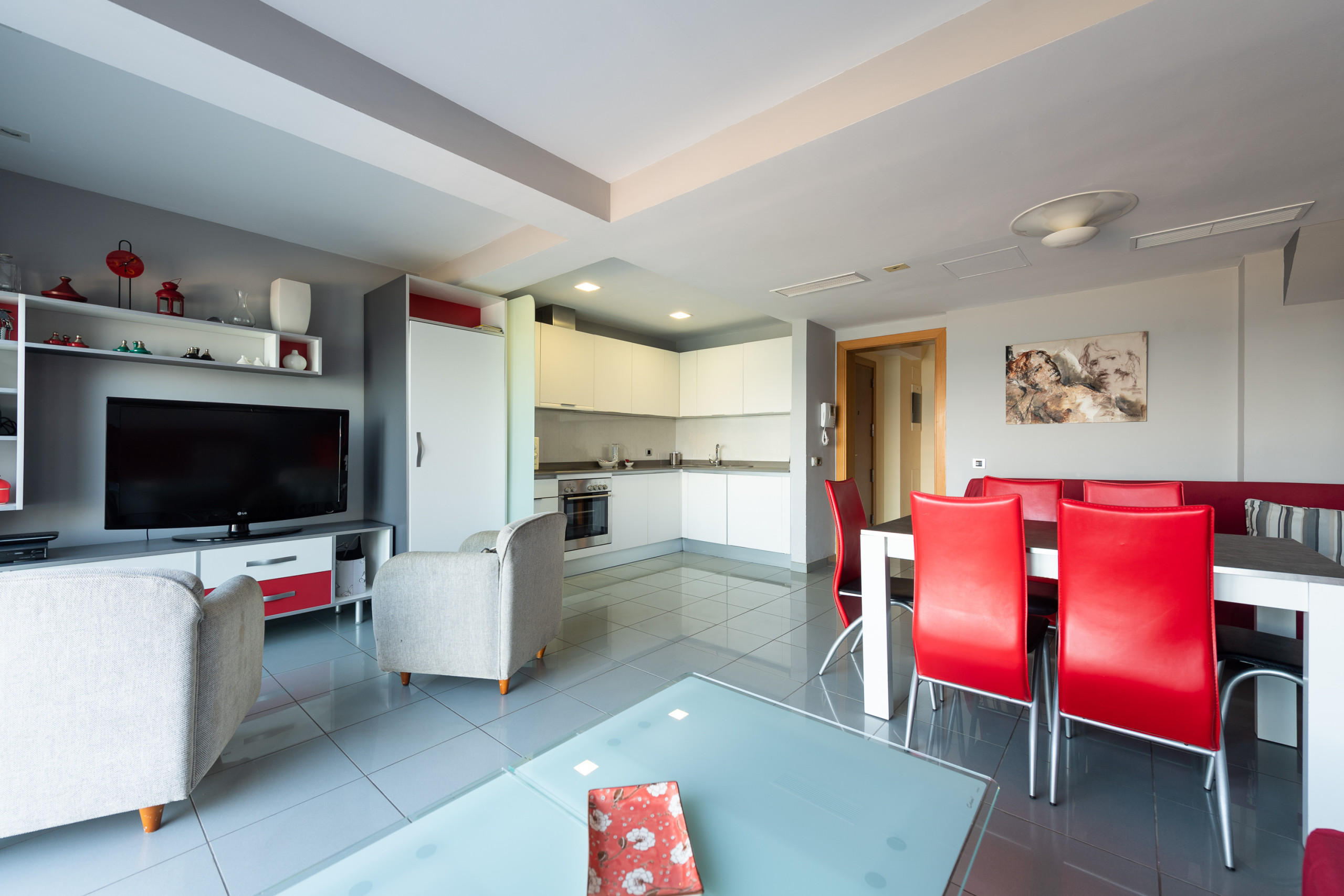 A cozinha está totalmente equipada com placa de cerâmica, frigorífico, micro-ondas, congelador, máquina de lavar roupa, louça, talheres, utensílios de cozinha, cafeteira, torradeira, chaleira, espremedor, etc. Tem também Smart Tv, ferro, ligação Wifi ilimitada.