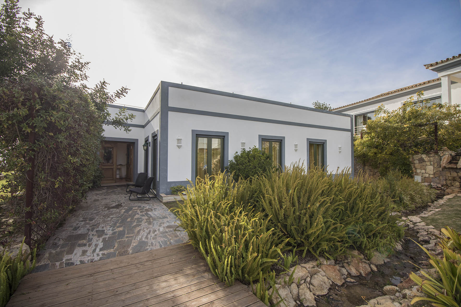 A localização perfeita para desfrutar da tranquilidade do interior, para explorar a cultura, gastronomia e beleza natural desta área quase intacta. Com vista sobre o campo, pomares, para o mar, Ria Formosa e à noite com uma miragem de luzes cintilantes e abrilhantadas pelo imponente Farol de Santa Maria que reflete a sua luz nas fachadas das casas durante a noite.