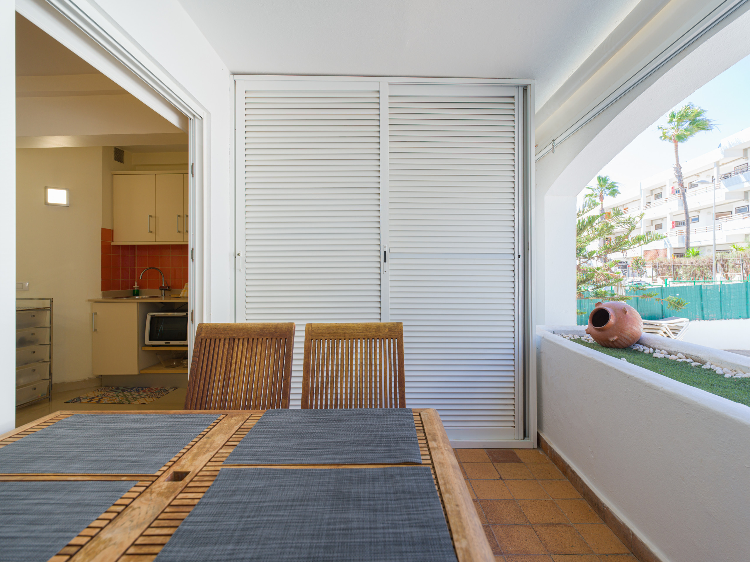 Alojamento muito bem aproveitado de 55m2, acolhedor e moderno, com um terraço confortável mobilado com mesa e cadeiras para passar agradáveis serões com vista para o jardim e a piscina. Encontra-se num pequeno complexo com poucas habitações, situado na encosta da Praia de San Agustín, tem a 200 metros do alojamento um acesso direto à praia de San Agustín, magnífica praia familiar com serviços em redor.