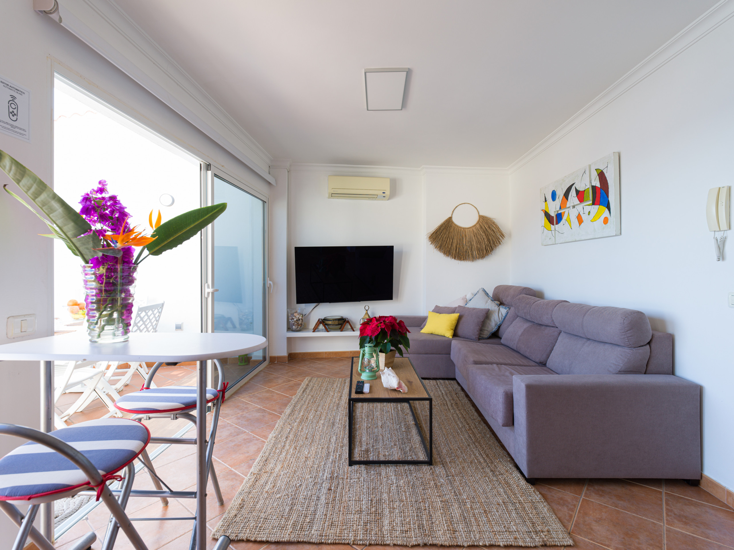 O mais destacado do alojamento é a sua varanda de cerca de 14 metros quadrados com vista para a praia e o mar, um prazer para os sentidos, onde poderá tomar sol nas espreguiçadeiras ou desfrutar da vida ao ar livre, já que conta com uma área de refeições exterior e toldo para se proteger do sol. Ideal para aproveitar os amanheceres e começar o dia com outra energia.