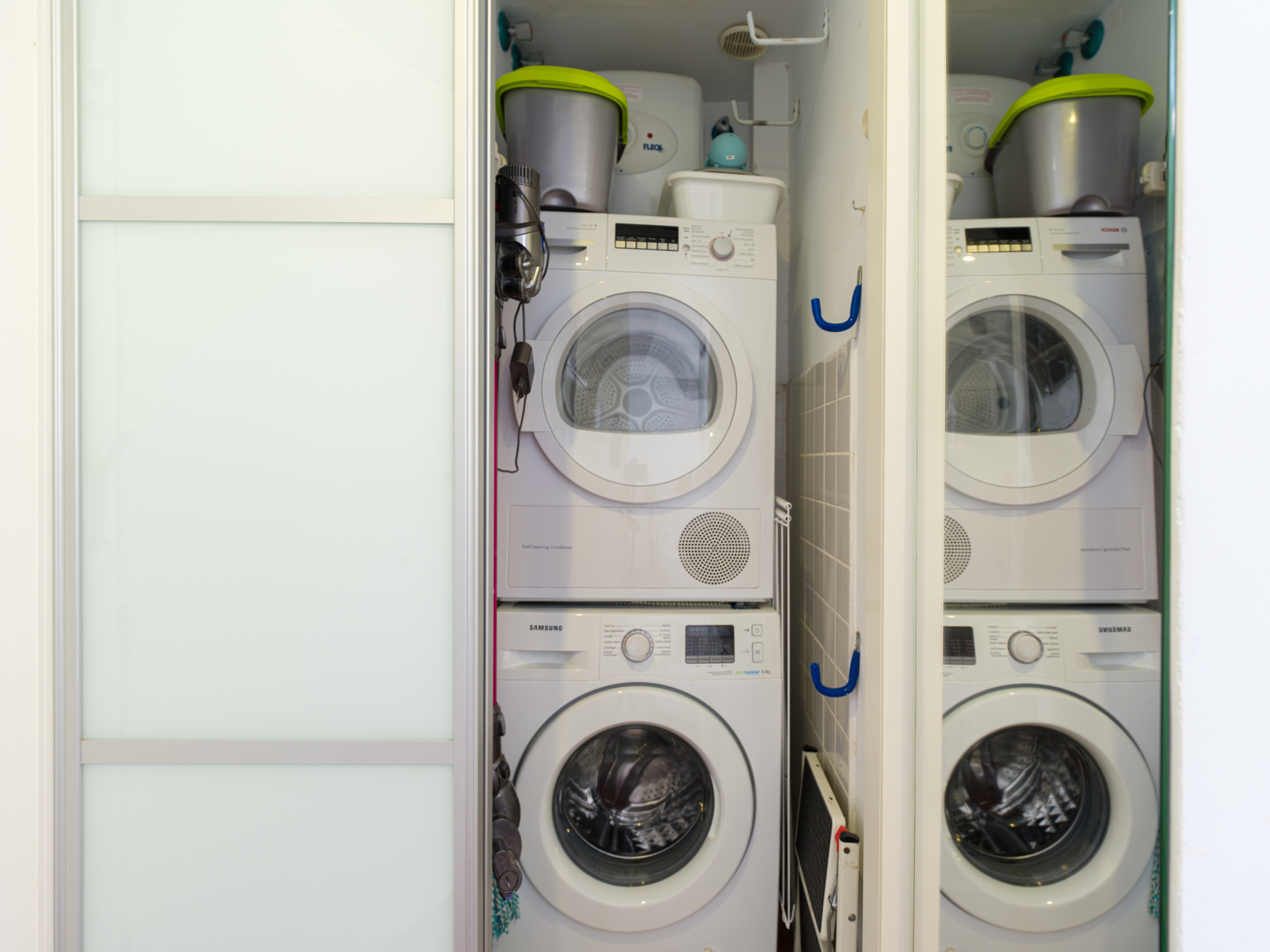 A cozinha é de planta aberta e totalmente equipada, com placa cerâmica, frigorífico, microondas, forno, congelador, máquina de lavar roupa, secador, máquina de lavar louça, louça, talheres, utensílios de cozinha, máquina de café, torradeira, chaleira e espremedor. Tem também ar condicionado, aquecimento por bomba de calor, ligação à Internet, ferro, televisão, e um sistema de música.