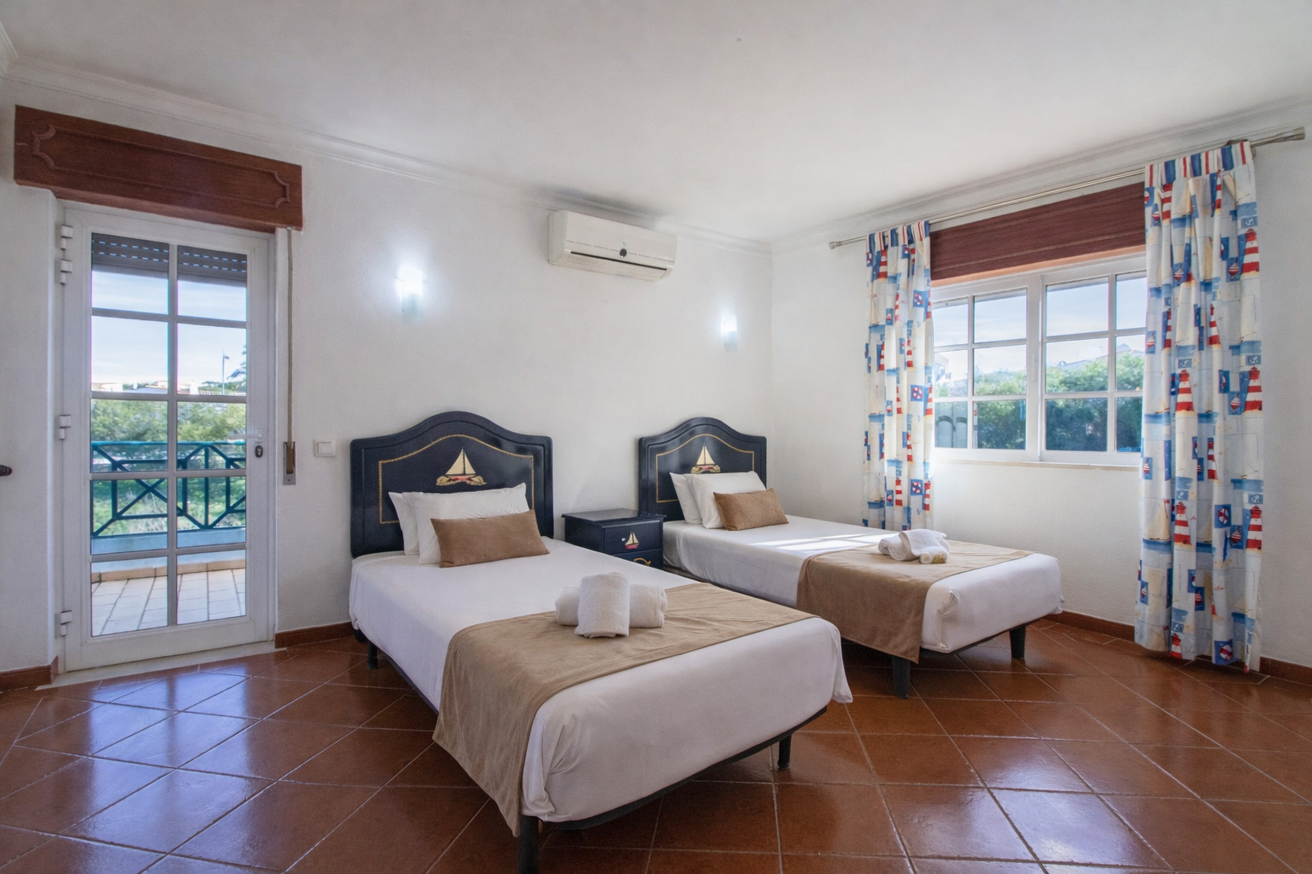 No interior, encontra quatro quartos confortáveis com ar condicionado, cada um com a sua própria casa de banho, garantindo privacidade e manhãs fáceis para todos. No rés do chão, há dois quartos com camas twin, ambos com casas de banho com banheira. No andar de cima, encontra um terceiro quarto com camas twin e casa de banho com chuveiro, mais um quarto de casal com casa de banho com banheira; os quartos do primeiro andar partilham uma esplanada com vista para o jardim. Há ainda um prático WC de serviço no rés do chão.