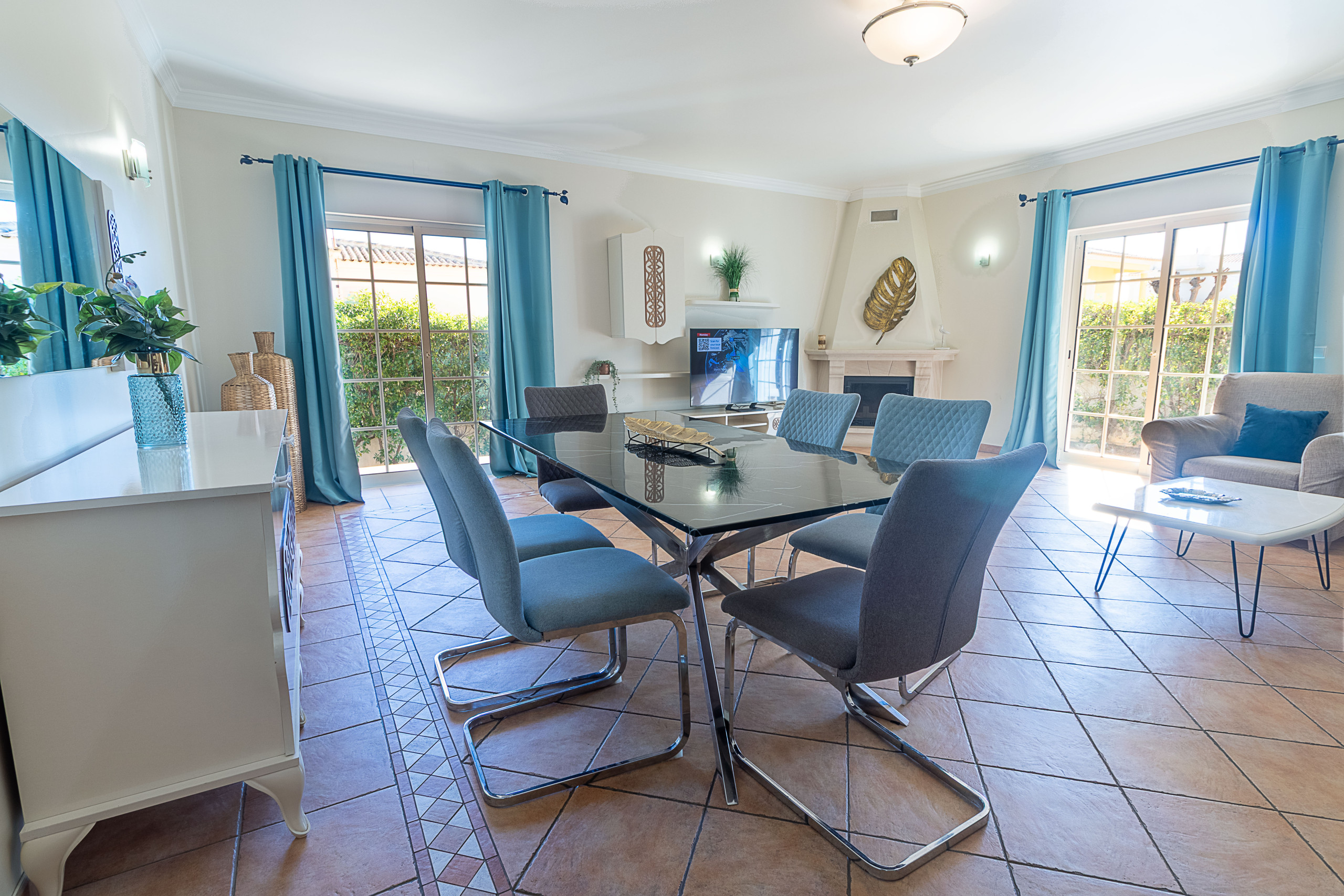 No exterior, o jardim e a área da piscina foram pensados para longos dias ao ar livre, com uma piscina de bom tamanho, zona de relvado e espaço de lazer. Há uma área de churrasco com mesa de jantar exterior, perfeita para almoços e jantares ao ar livre, bem como espreguiçadeiras para apanhar sol e relaxar. Na cave, a villa conta ainda com uma mesa de snooker e uma mesa de pingue‑pongue, além de uma mesa e duas poltronas oferecendo um espaço extra de diversão para crianças e adultos.