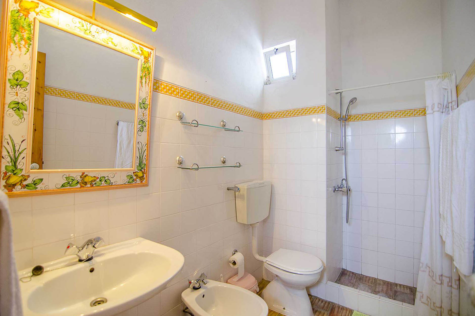 No rés-do-chão existem 4 quartos, dois de casal e dois duplos. Um dos quartos é acedido através de um outro quarto e é mais direcionado para crianças ou jovens. Estes quartos no rés-do-chão têm à sua disposição um total de 3 casas de banho, todas elas com chuveiro.