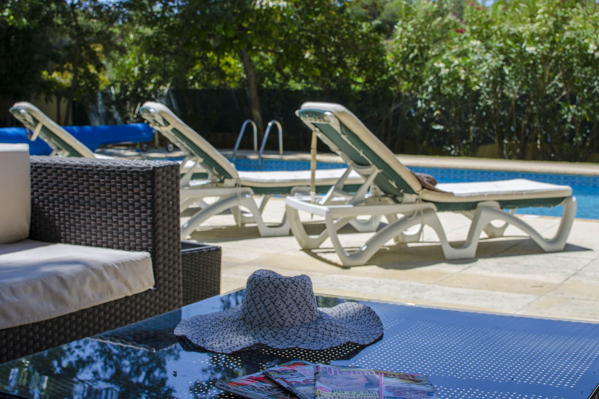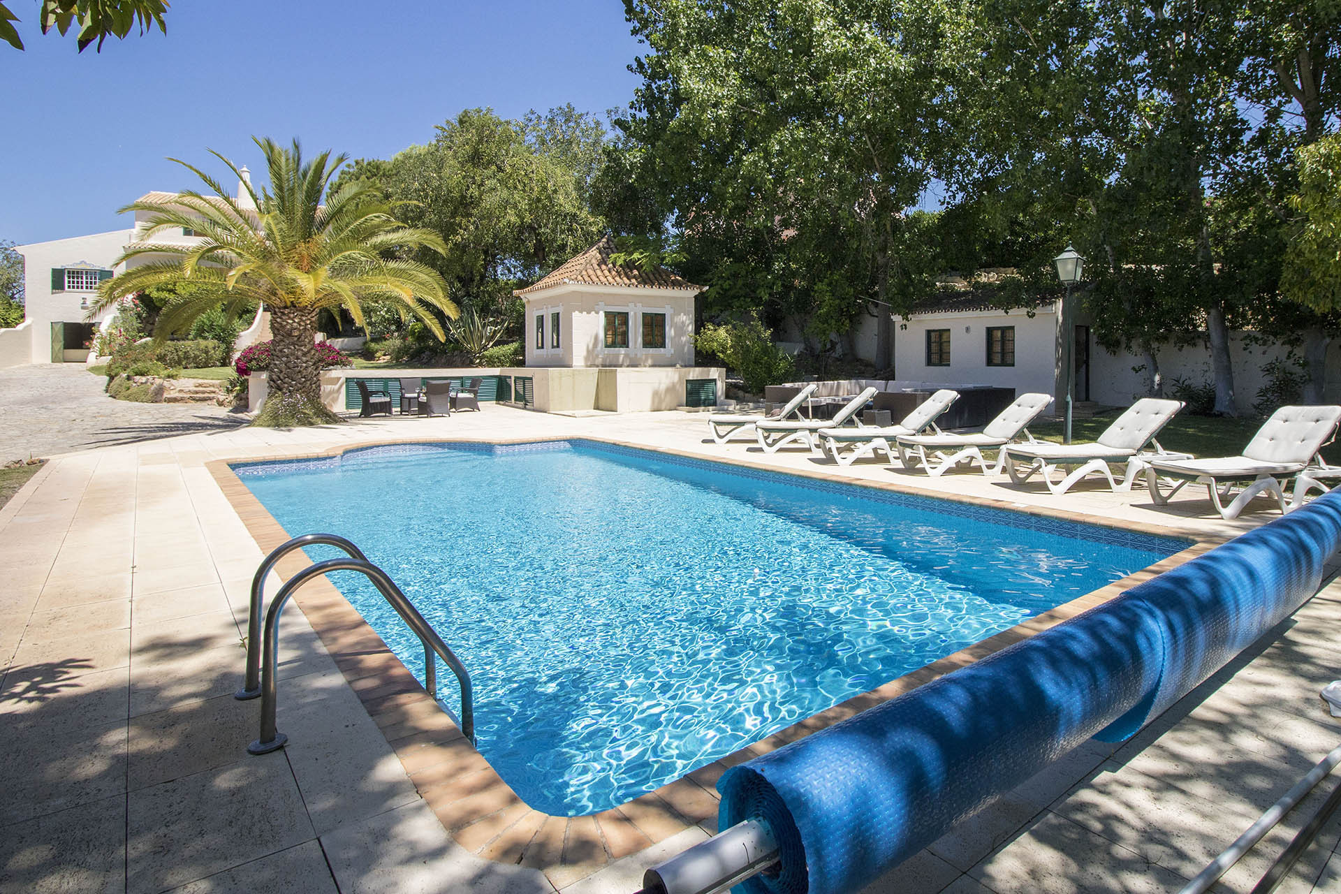 A piscina tem 10 metros de comprimento por 5 metros de largura e com profundidade de 70cm junto às escadas e 2 metros na parte mais funda. A piscina tem a possibilidade de ser aquecida somente entre Abril e Outubro, através de um custo adicional (com um pedido efetuado no mínimo com 48h de antecedência), Contudo se as temperaturas estiverem demasiadamente baixas, poderá não ser possível o fornecimento do serviço. Na zona da piscina tem ao seu dispor 8 espreguiçadeiras e mobiliário de jardim para aproveitar o maravilhoso Sol do Algarve.