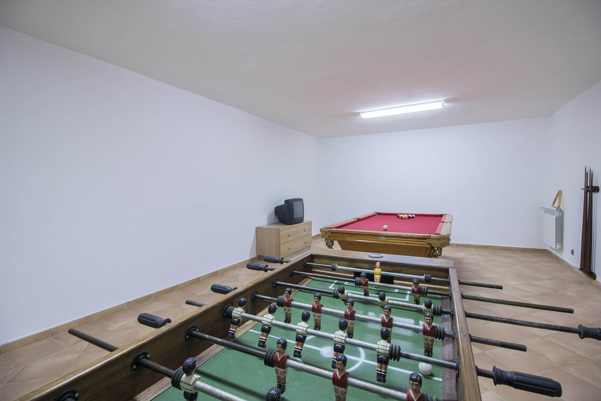 A cave da casa conta com um espaço de lazer, confortável com todas as comodidades para disfrutar dos fins de noite, assistindo um filme ou jogando snooker, matraquilhos ou ténis de mesa.