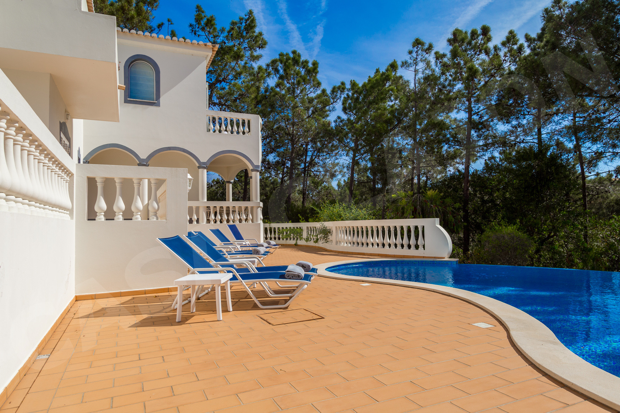 A piscina infinita, que pode ser aquecida a pedido, é facilmente acessível a partir de todos os quartos da vila e há uma grande varanda da piscina com espreguiçadeiras. A cozinha está bem equipada e há um churrasco a carvão na varanda da sala de jantar com uma grande mesa de jantar exterior e cadeiras.