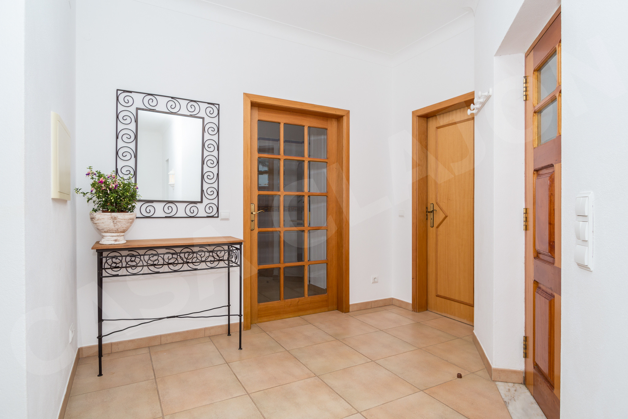 Ao entrar na propriedade pela porta da frente, a sala de estar, a sala de jantar, a cozinha, a casa de banho de convidados e um quarto duplo com casa de banho privativa estão localizados neste andar. Há mais 2 quartos duplos com uma casa de banho familiar e um quarto duplo com casa de banho privativa que são acessíveis através de uma escada para o piso inferior. Todos os quartos têm portas de correr que dão acesso a varandas exteriores.
