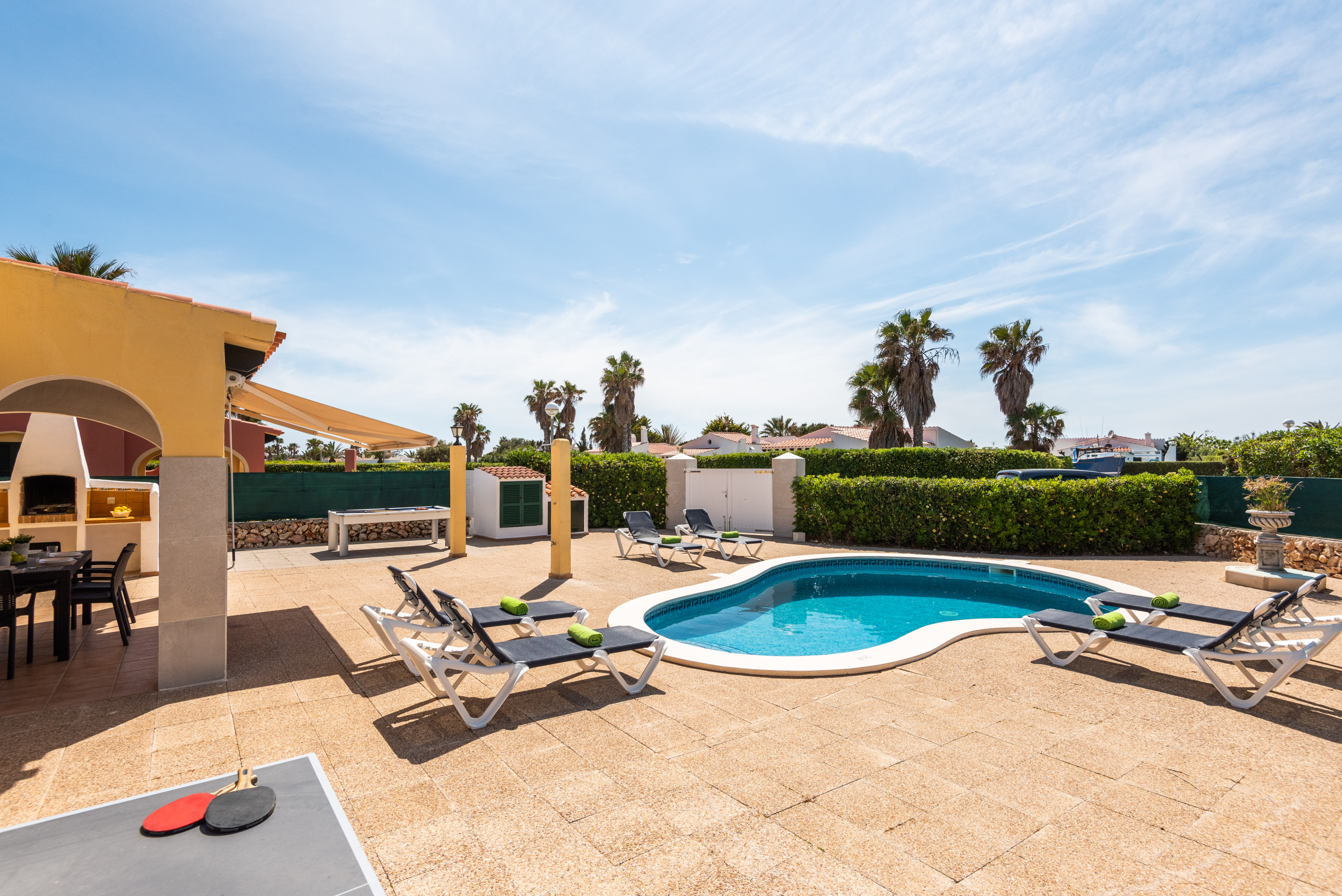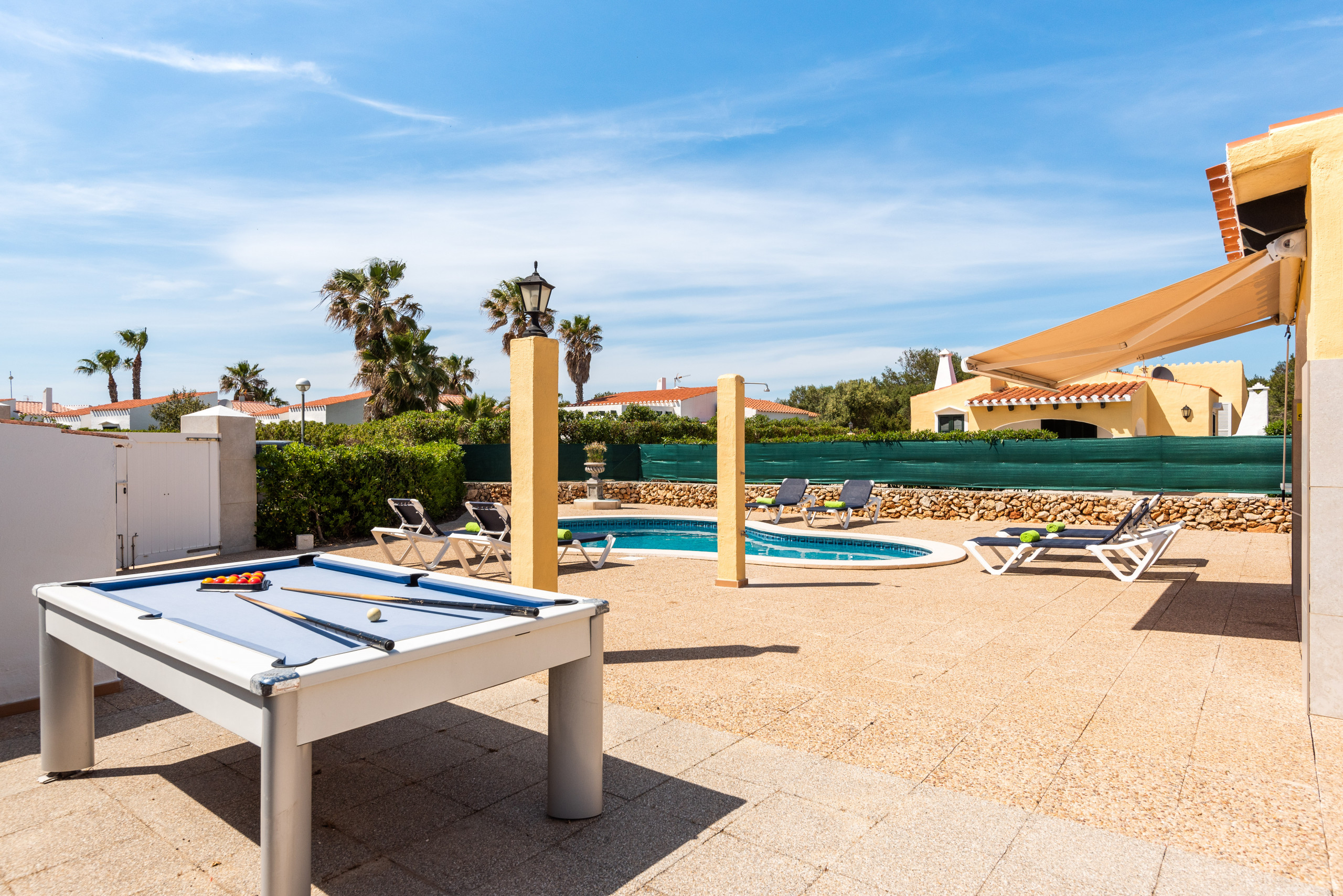 Its on a development with many other similar rental villas, so the place is tranquil and ideally placed, with local shops and bars around 10 minutes walk. Lovely swimming pool and a pool table and table tennis to keep everyone entertained.