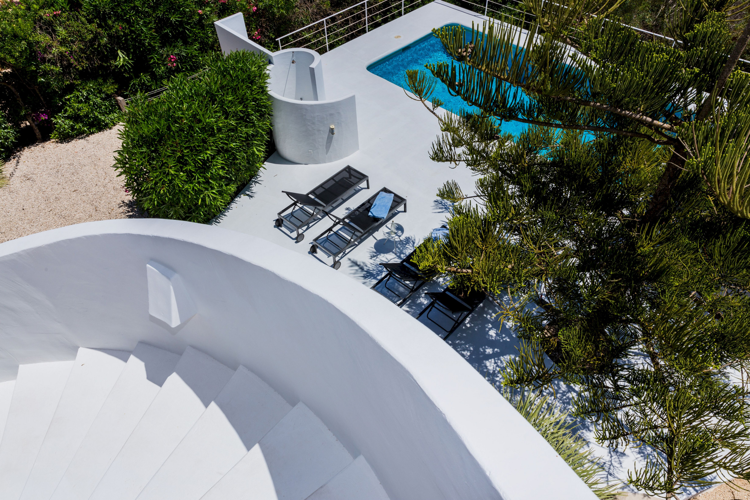 Jardim e piscina privada com duche exterior