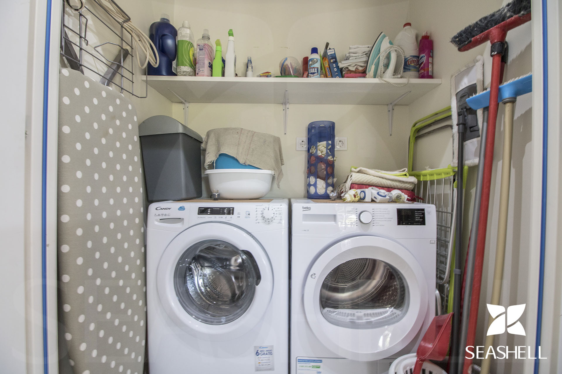 A casa dispõe de uma pequena lavandaria com máquina de lavar roupa e máquina de secar roupa.