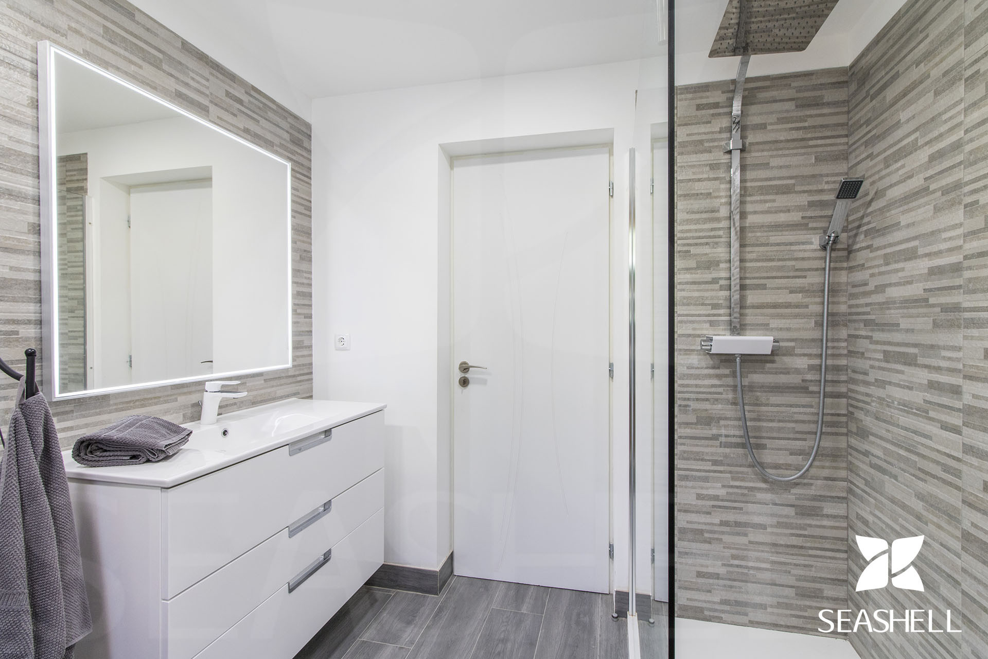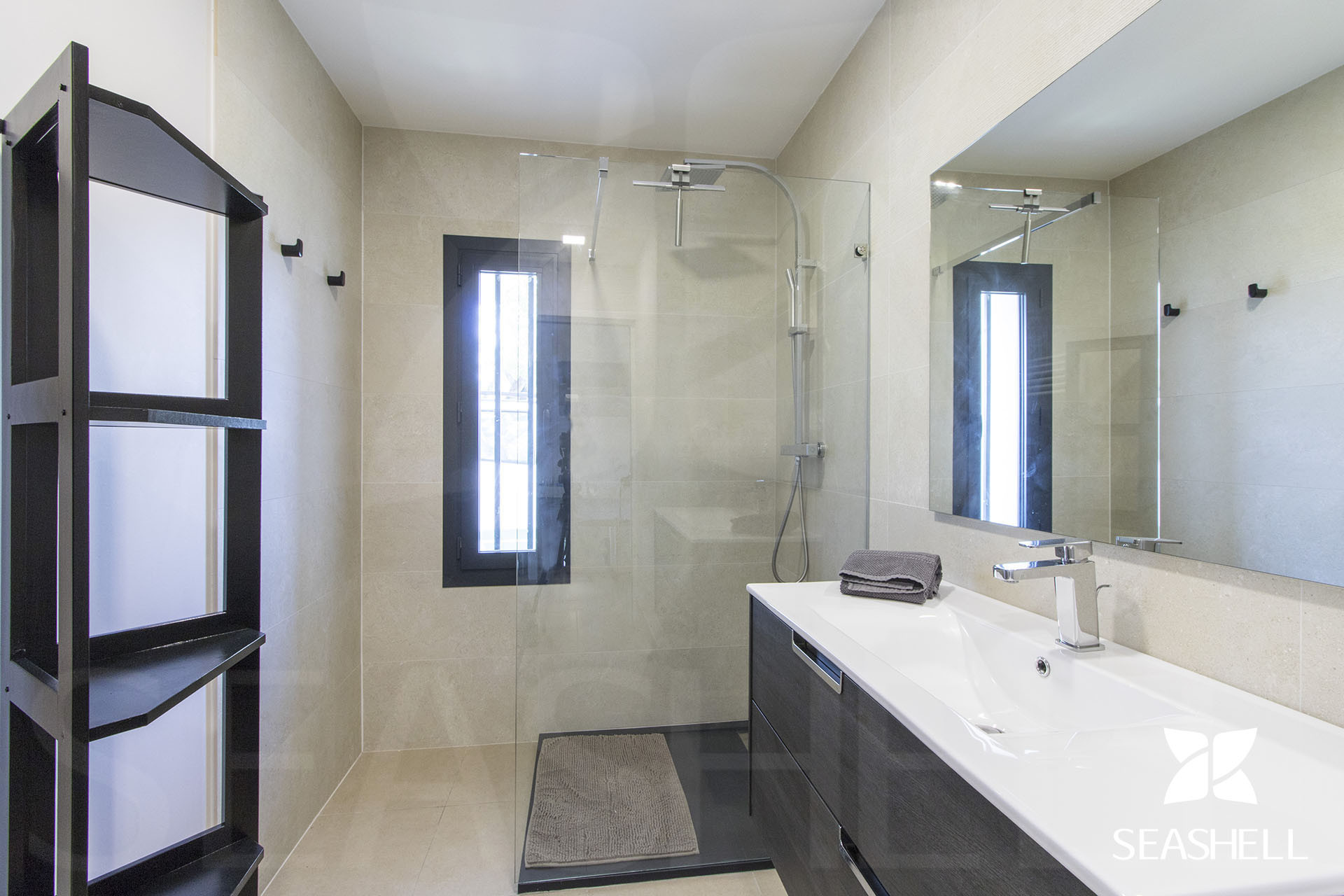 Em cada lado encontra-se uma casa de banho comum, com duche, para os 2 quartos.
