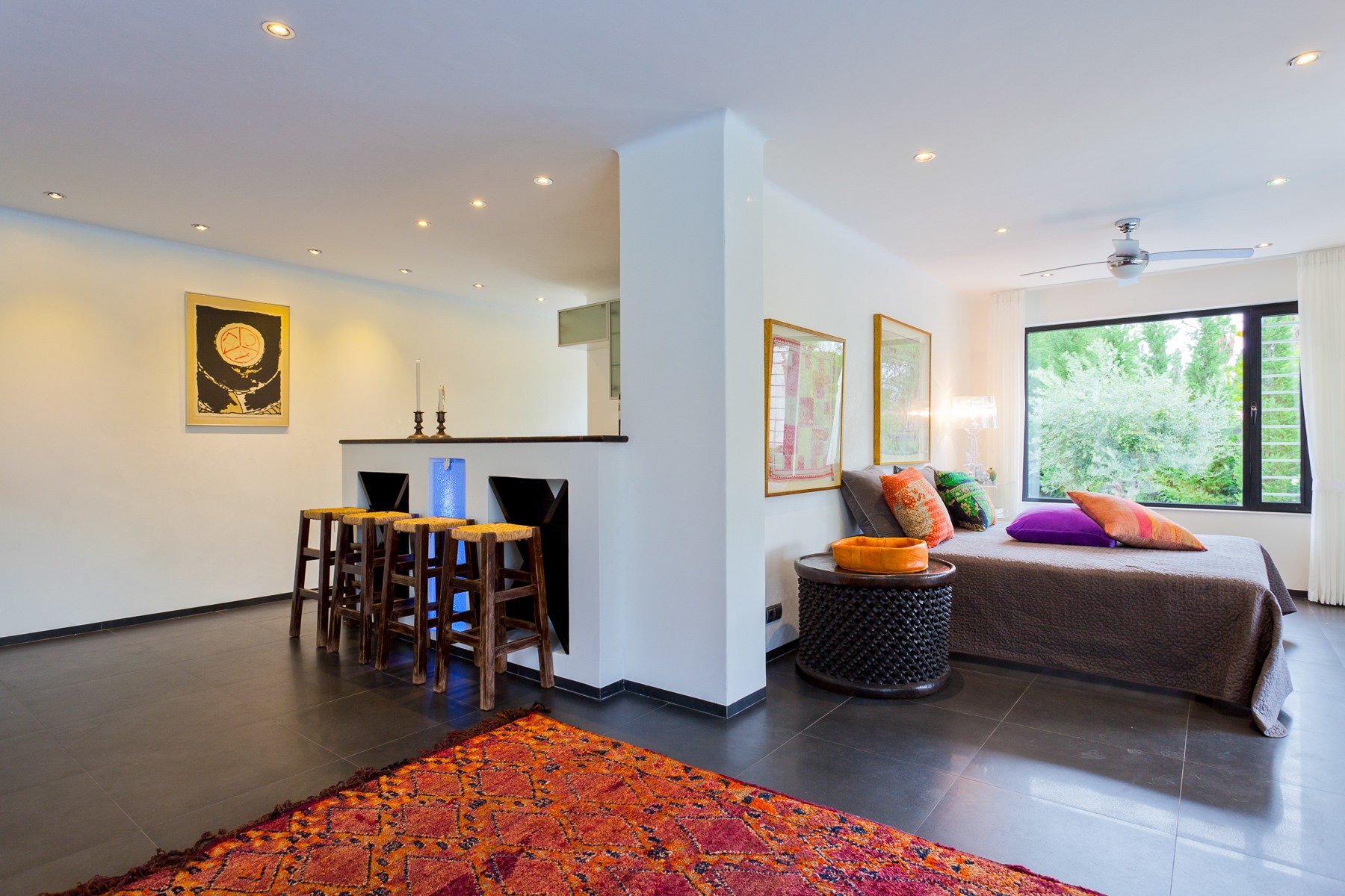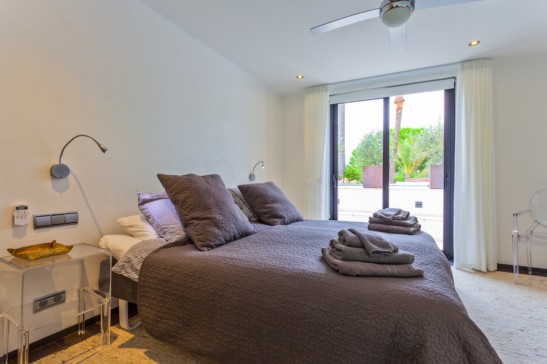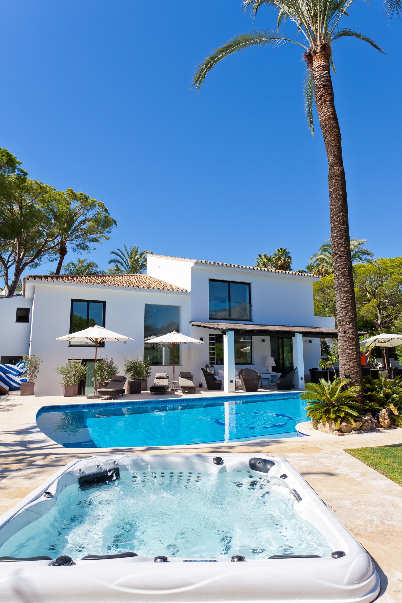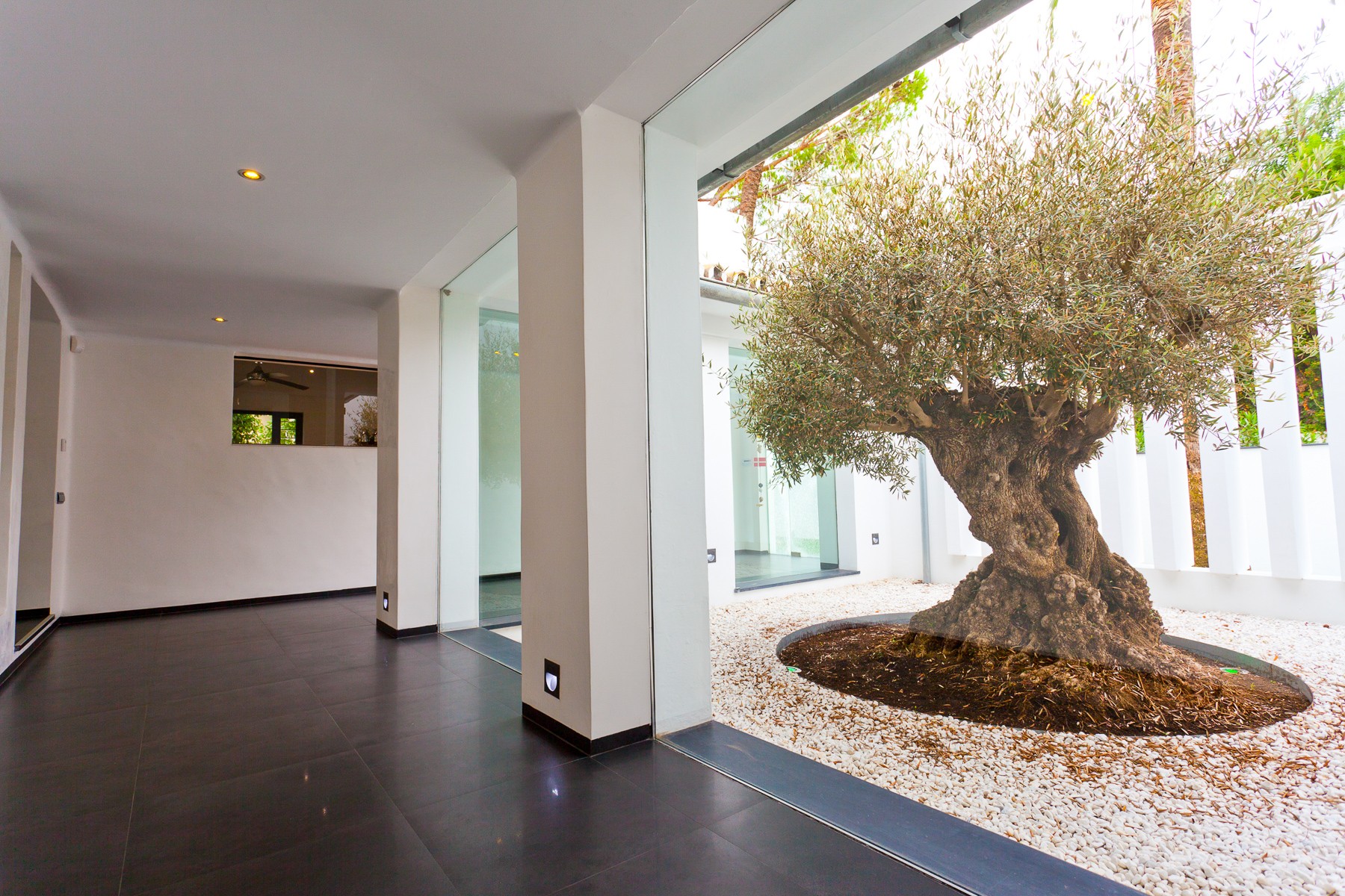 The villa is built in charming Spanish style around an interior patio with a 400-year-old olive tree that gives the house its very own spirit and mindfulness. Beautiful stone floors, glass walls, floor-to-ceiling windows, and quality construction with a tasteful minimalist decor, make this house a unique experience for a memorable vacation.