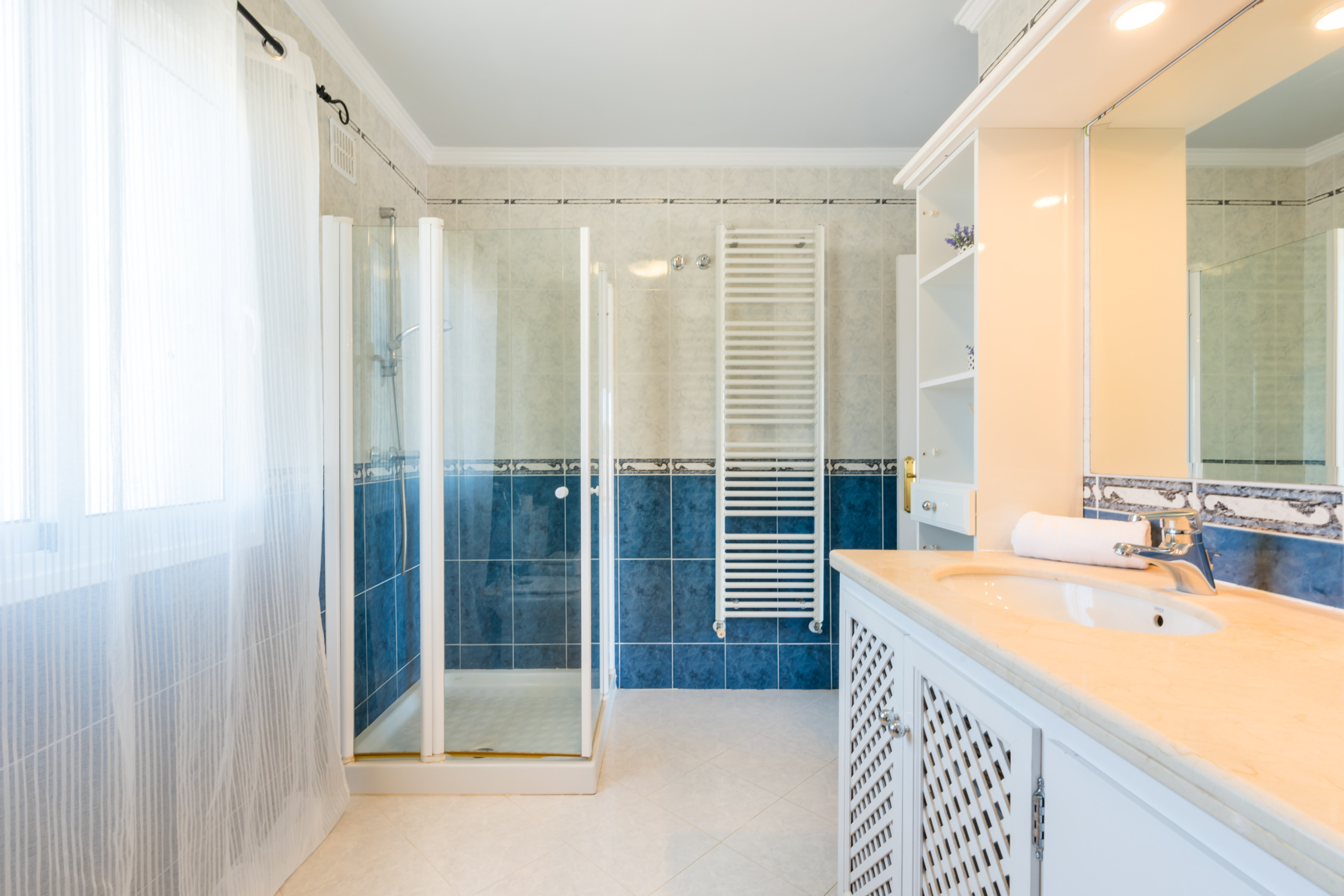 There were 7 adults and one 8 month old baby. Our oldest adult was 91 and then 81. The two downstairs bedrooms with bathroom in the middle was perfect for them and my youngest daughter. My eldest daughter, husband and baby had the bedroom, shower room and lounge suite on the first floor and we had the bedroom and shower room opposite to them. The villa was more than big enough that we never once felt like we were on top of each other and that is important when you are together for 2 weeks. The outside space was wonderful and with areas for shade and full sun within a short distance form each other we felt like we were still together. The villa is very well equipped and had everything we needed. A car is a must have although the beach and shop are in walking distance although there are a few tough hills. Good exercise if you like walking. Great golf all around. We would definitely recommend this villa. A holiday that we will remember for ever.