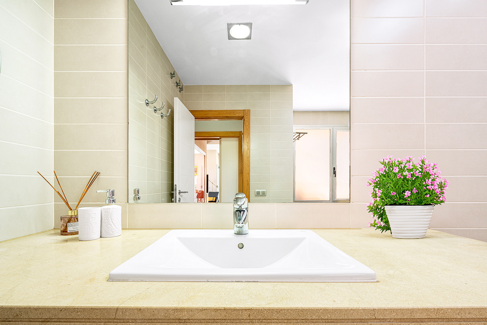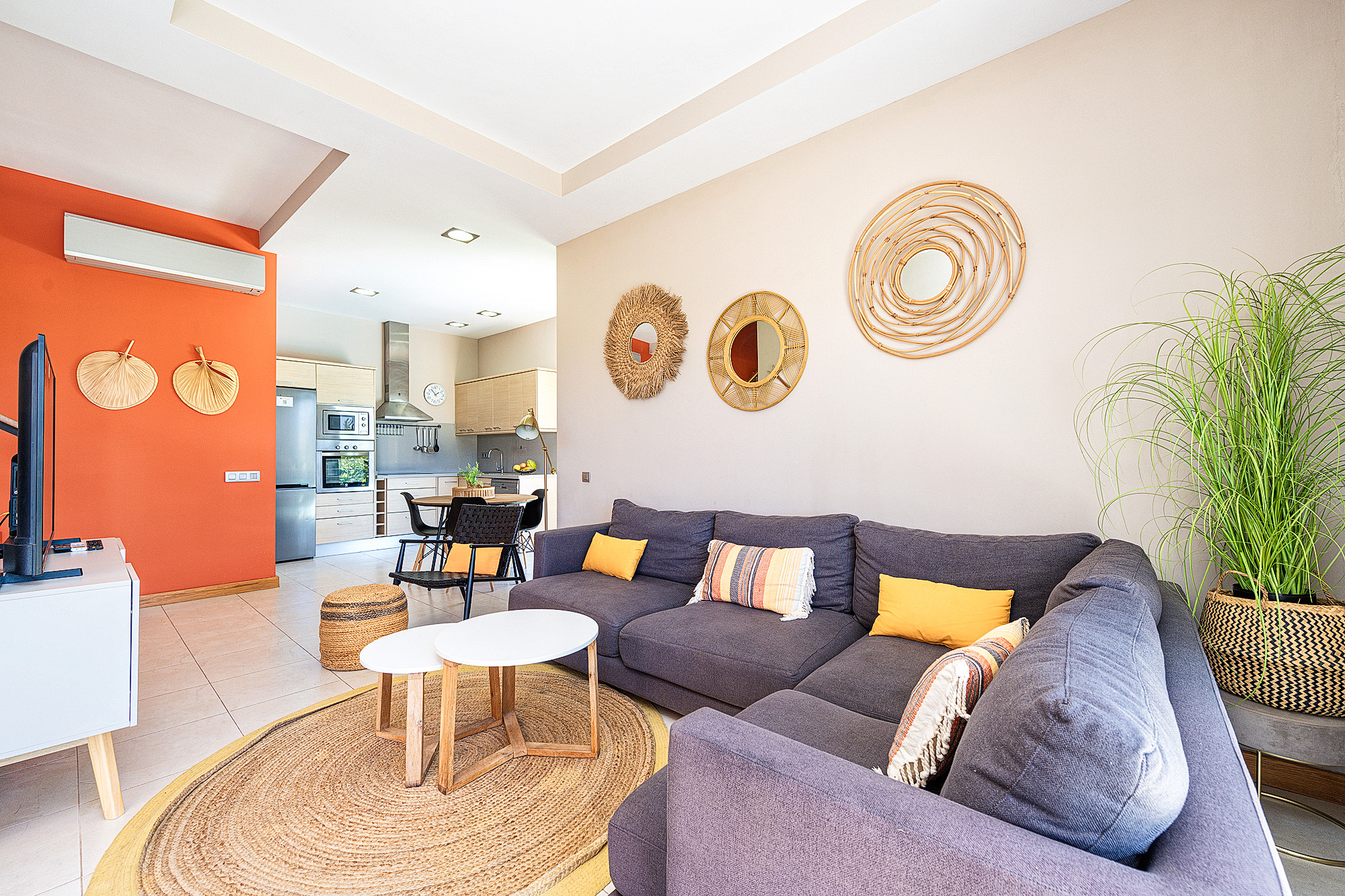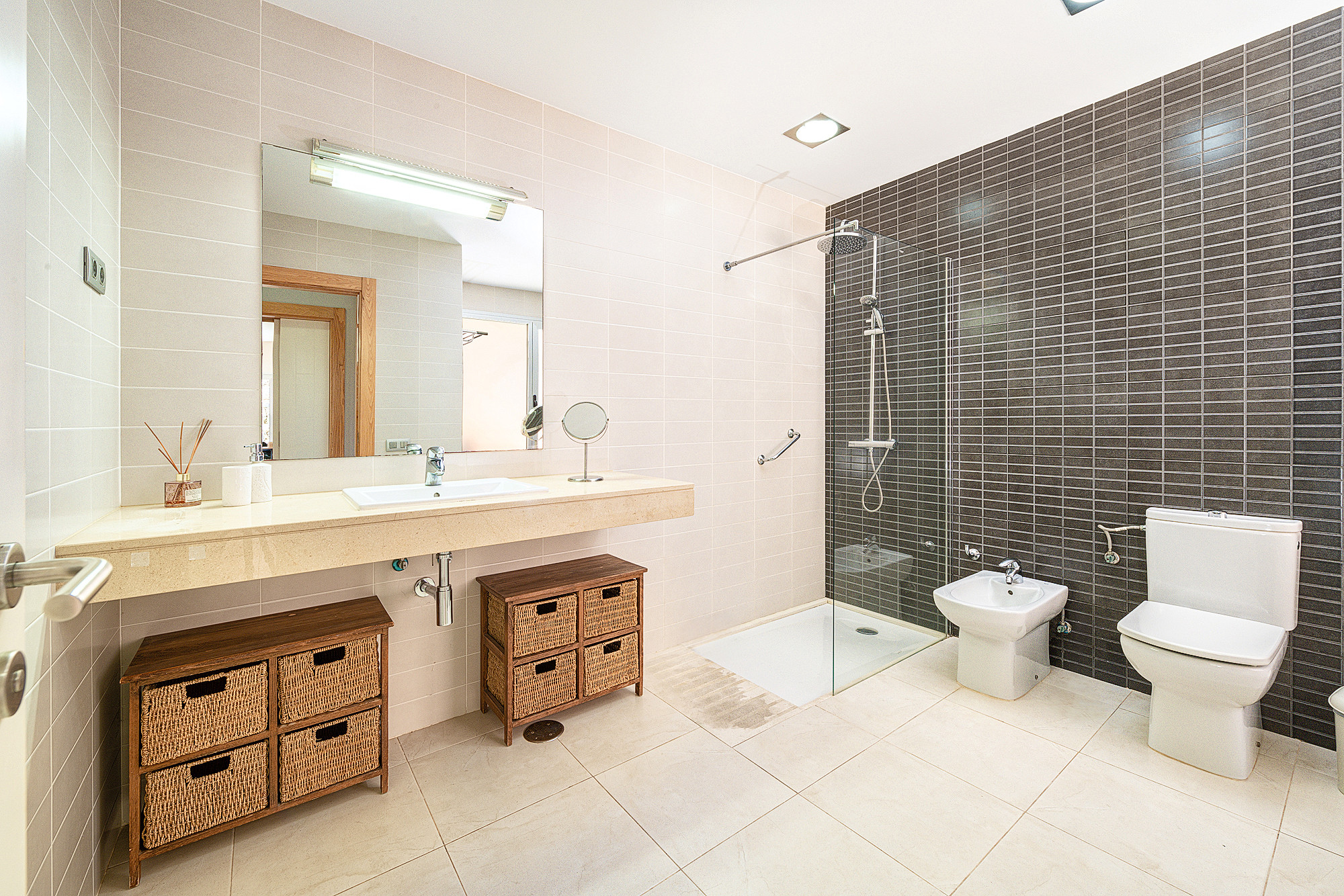 A casa muito luminosa consiste numa confortável sala de estar com uma cozinha moderna e integrada, dois quartos duplos espaçosos, com grandes camas individuais, duas casas de banho completas, uma muito grande com banheira e chuveiro e a outra completa com chuveiro.